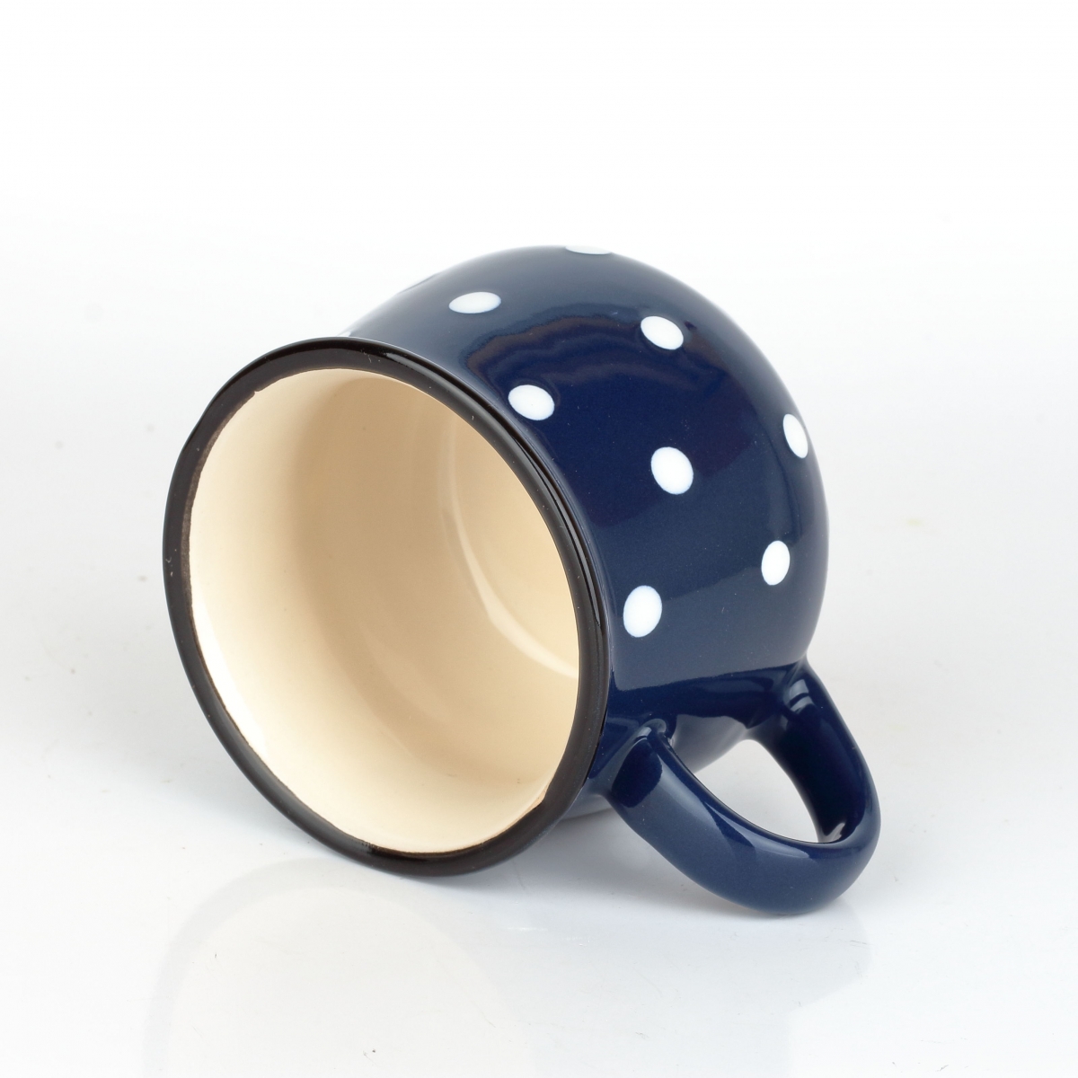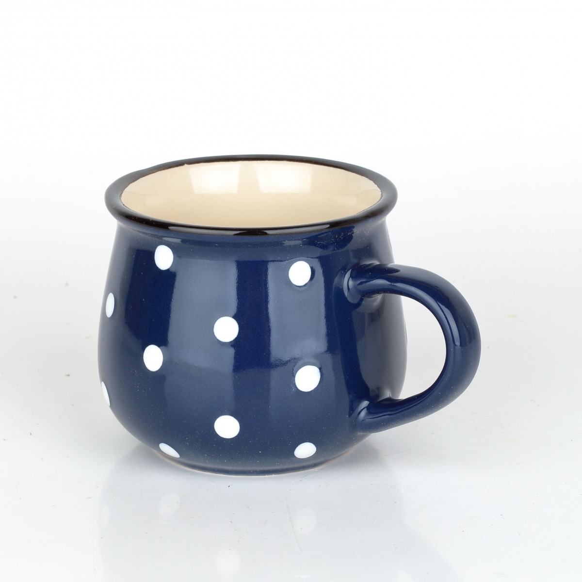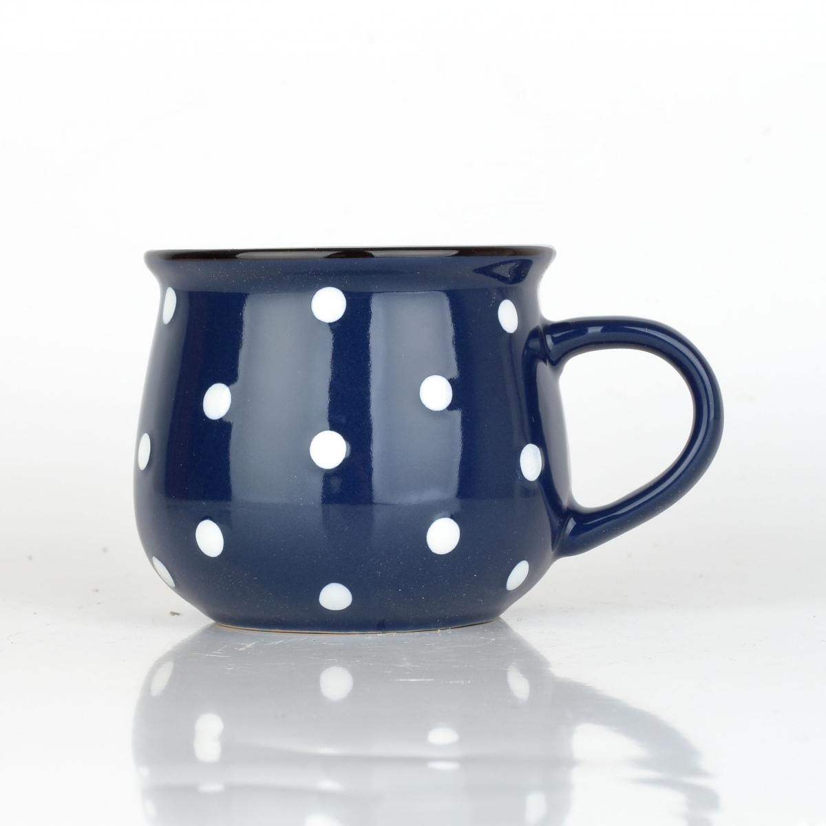 Keramický hrnček modrý s bodkami 230ml bol vždy súčasťou kuchýň každého vidieckeho obydlia. Veľký hrnček v pestrých farbách, často s bodkami. Presne ako tento.