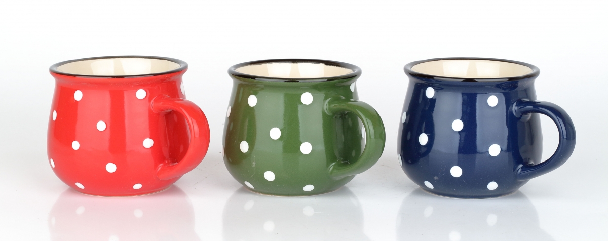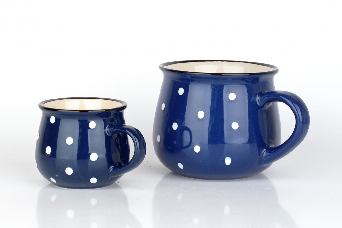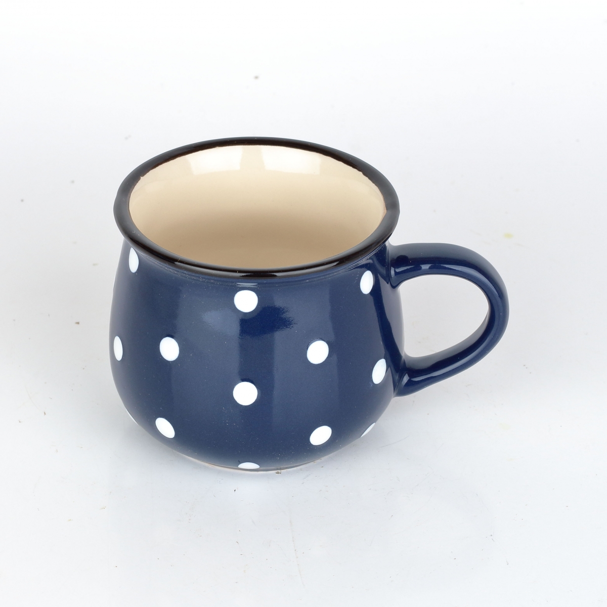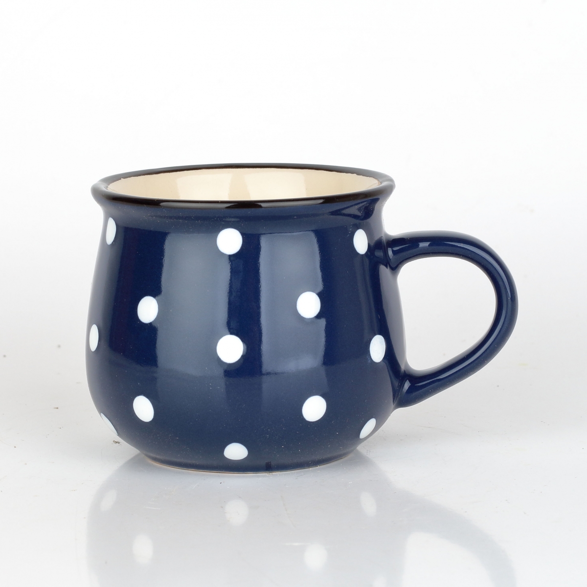Keramický hrnček modrý s bodkami 230ml bol vždy súčasťou kuchýň každého vidieckeho obydlia. Veľký hrnček v pestrých farbách, často s bodkami. Presne ako tento.