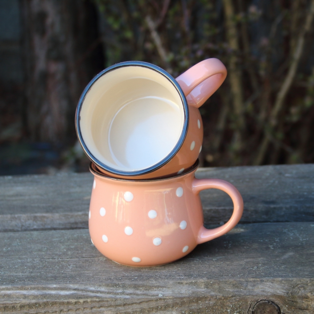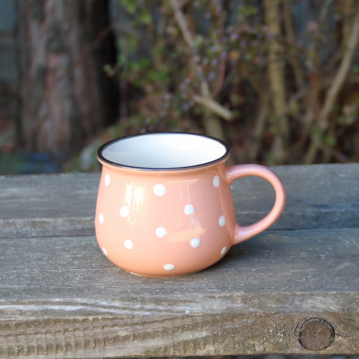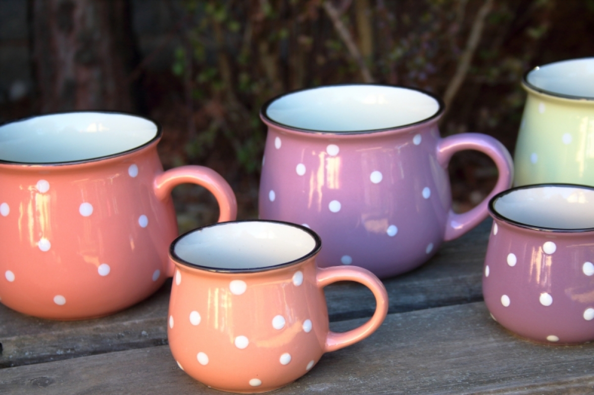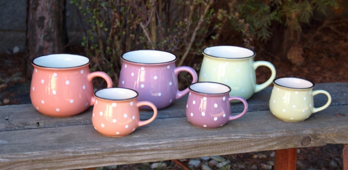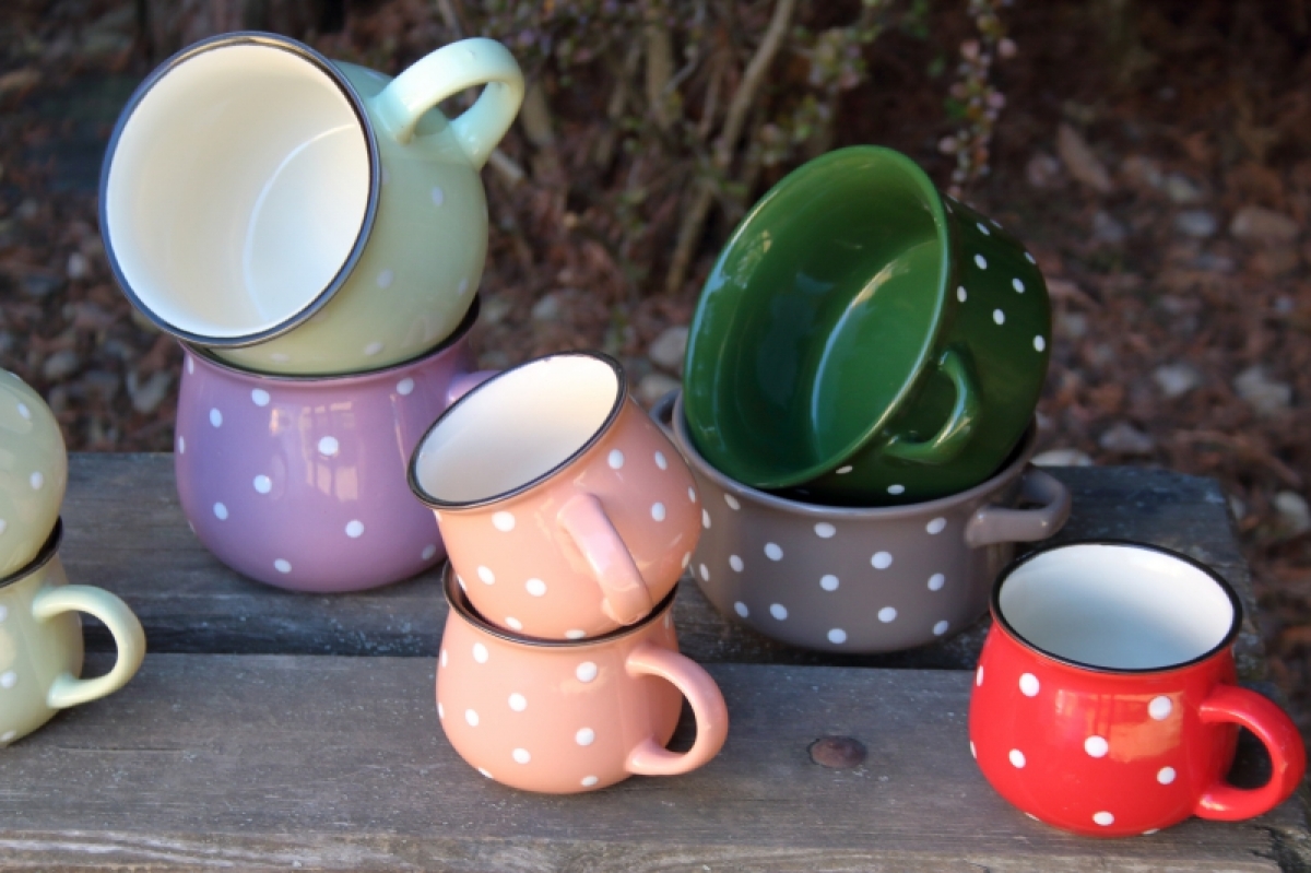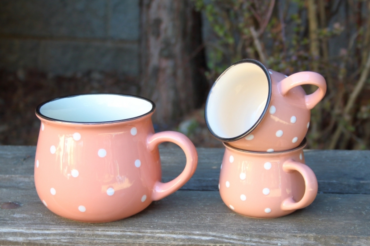 Krásny keramický hrnček s bodkami poteší všetkých milovníkov vidieckeho štýlu. Tento keramický hrnček nie je iba pomocníkom do kuchyne, ale aj peknú dekorácií.