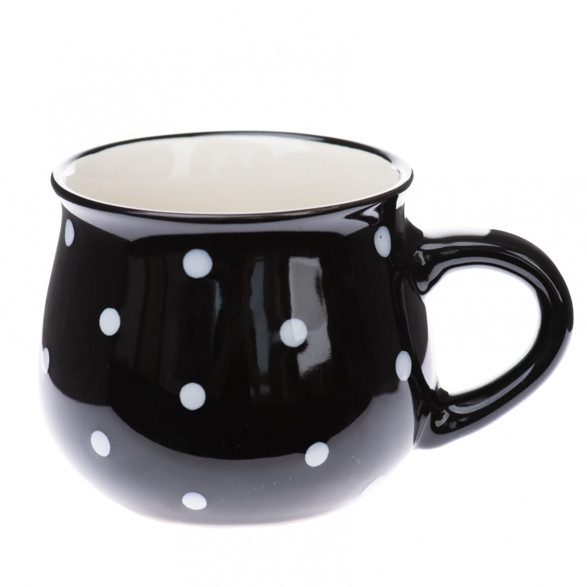 Krásny keramický hrnček sa nestratí v žiadnej domácnosti. Či už si v ňom budete vychutnávať čaj, kávu alebo napríklad kakao, jeho bucľatý tvar vám sadne do ruky ako uliaty. Roztomilé bodky na čiernom podklade sú tradičným dekórom, ktorý je obľúbený naprieč generáciami.
