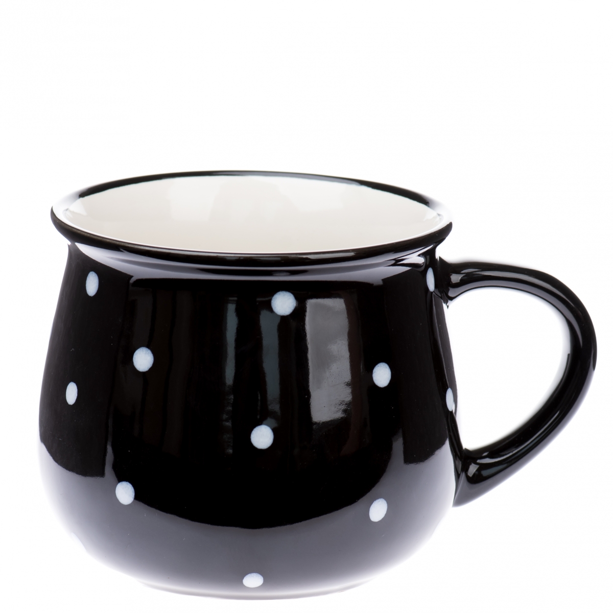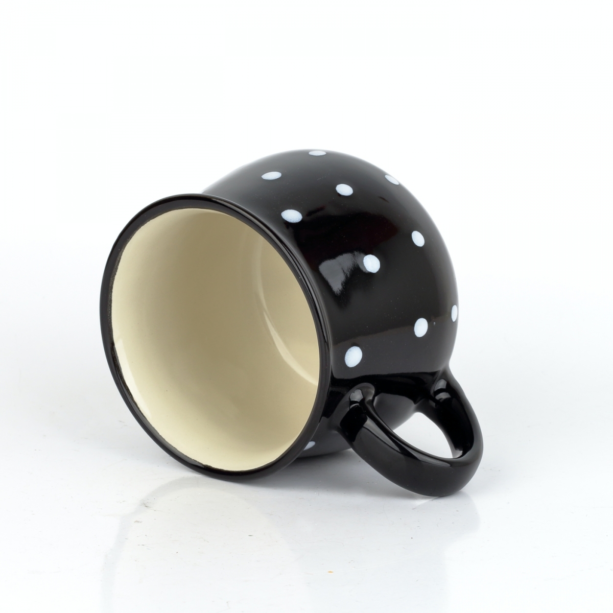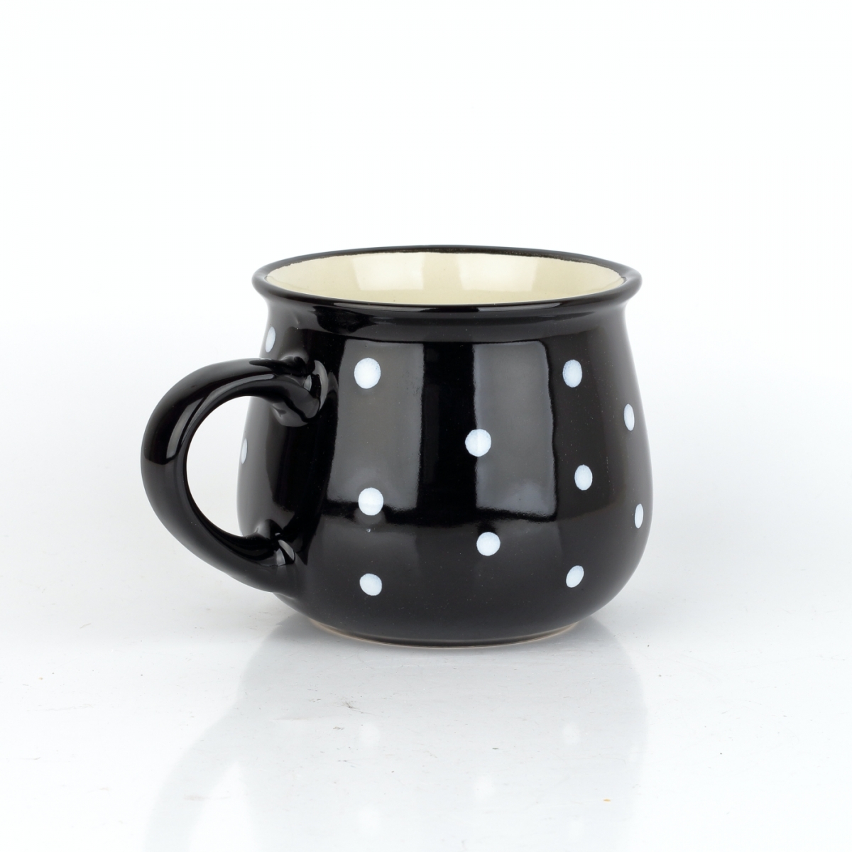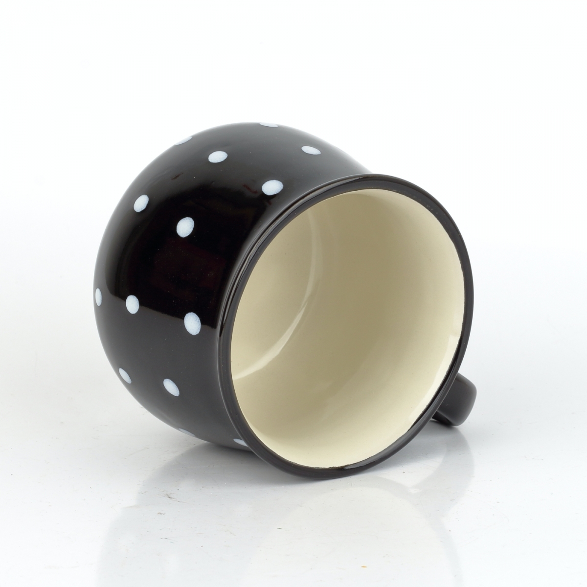 Malé biele bodky na lesklej čiernej glazúre, z neho robia naozaj krásny kúsok. V kuchyni sa bude naozaj vynímať. Vďaka veľkosti tento keramický hrnček určite využijete aj pri varení a krásne v ňom budú vyzerať třeba aj naaranžované kvety.