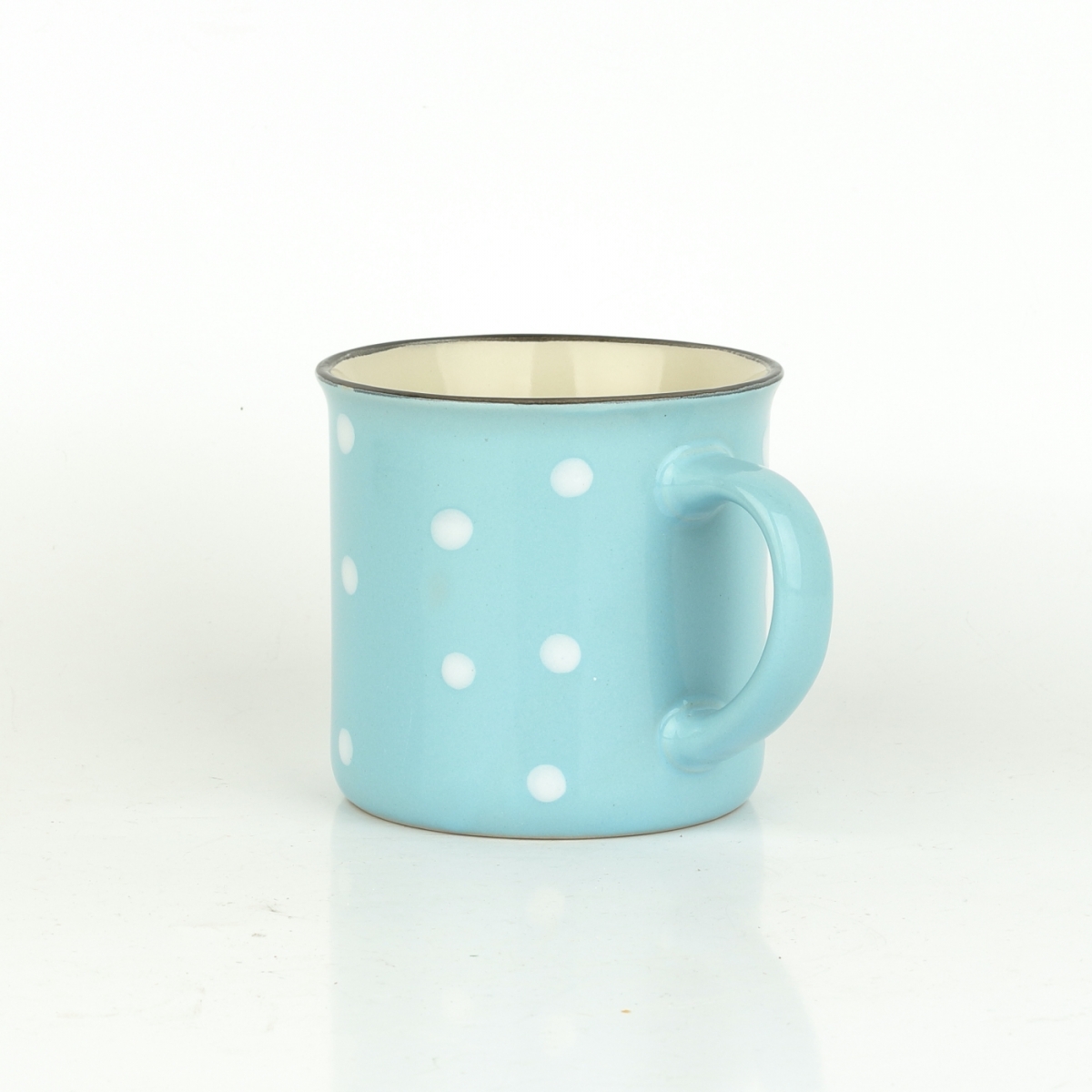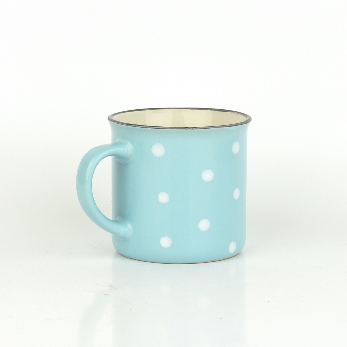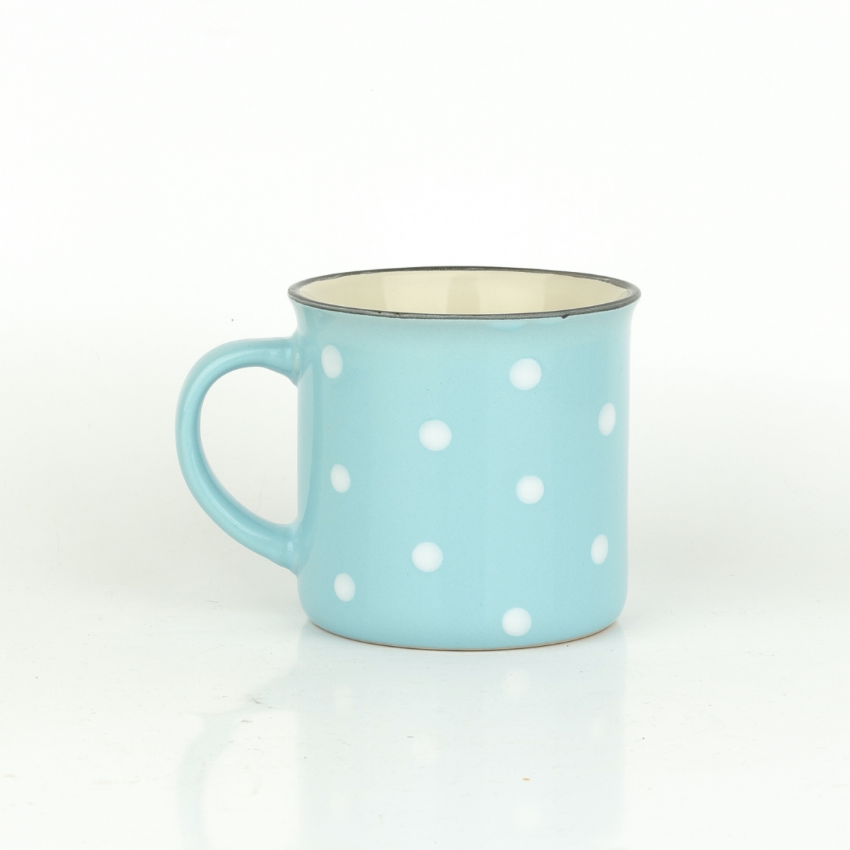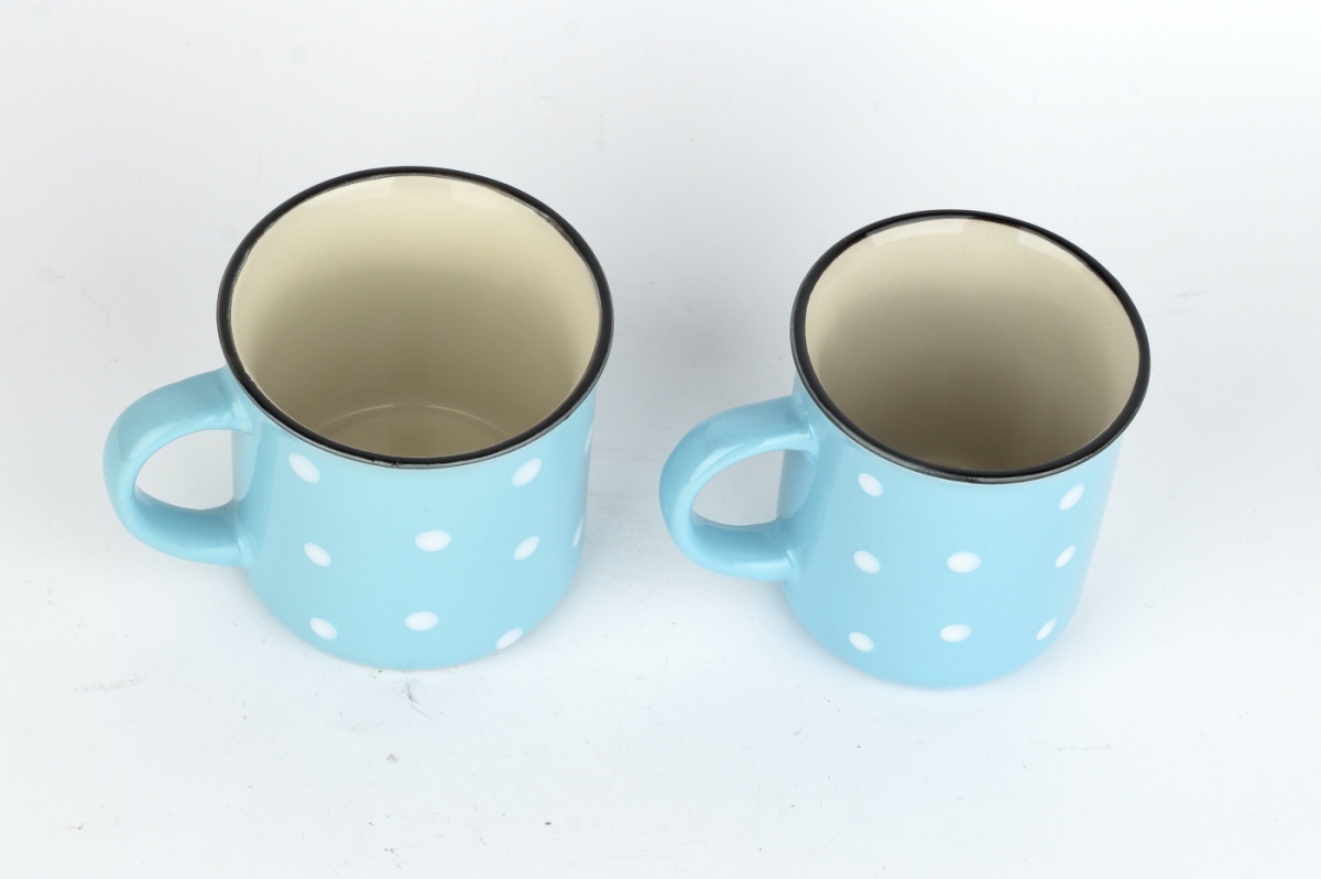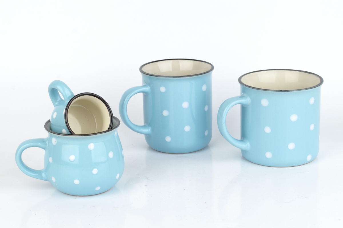 Krásny keramický hrnček sa nestratí v žiadnej domácnosti. Či už si v ňom budete vychutnávať čaj, kávu alebo napríklad kakao, určite vás poteší. Roztomilé bodky na svetlo modrom podklade sú tradičným dekórom, ktorý je obľúbený naprieč generáciami. Nezabudnime ani na pekný detail v podobe tenkej čiernej linky na hornom okraji hrnčeka.