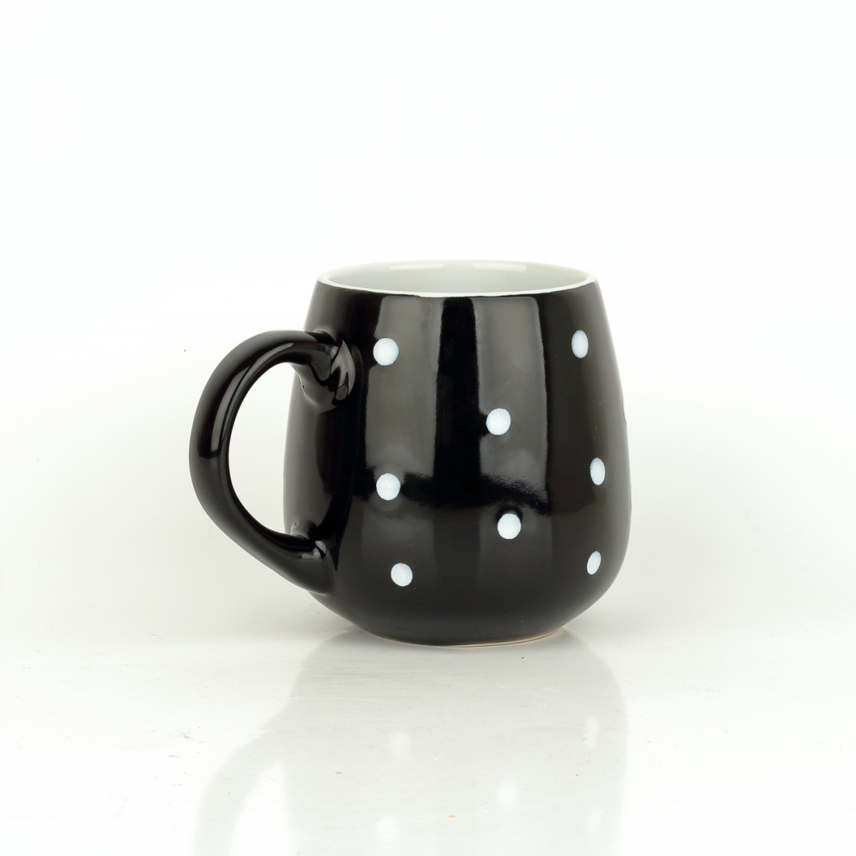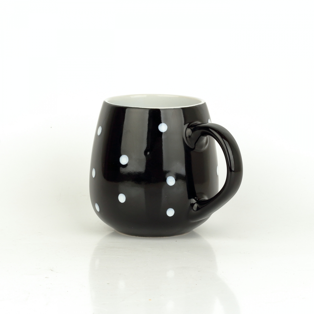 Keramický hrnček väčší čierny s bielymi bodkami
