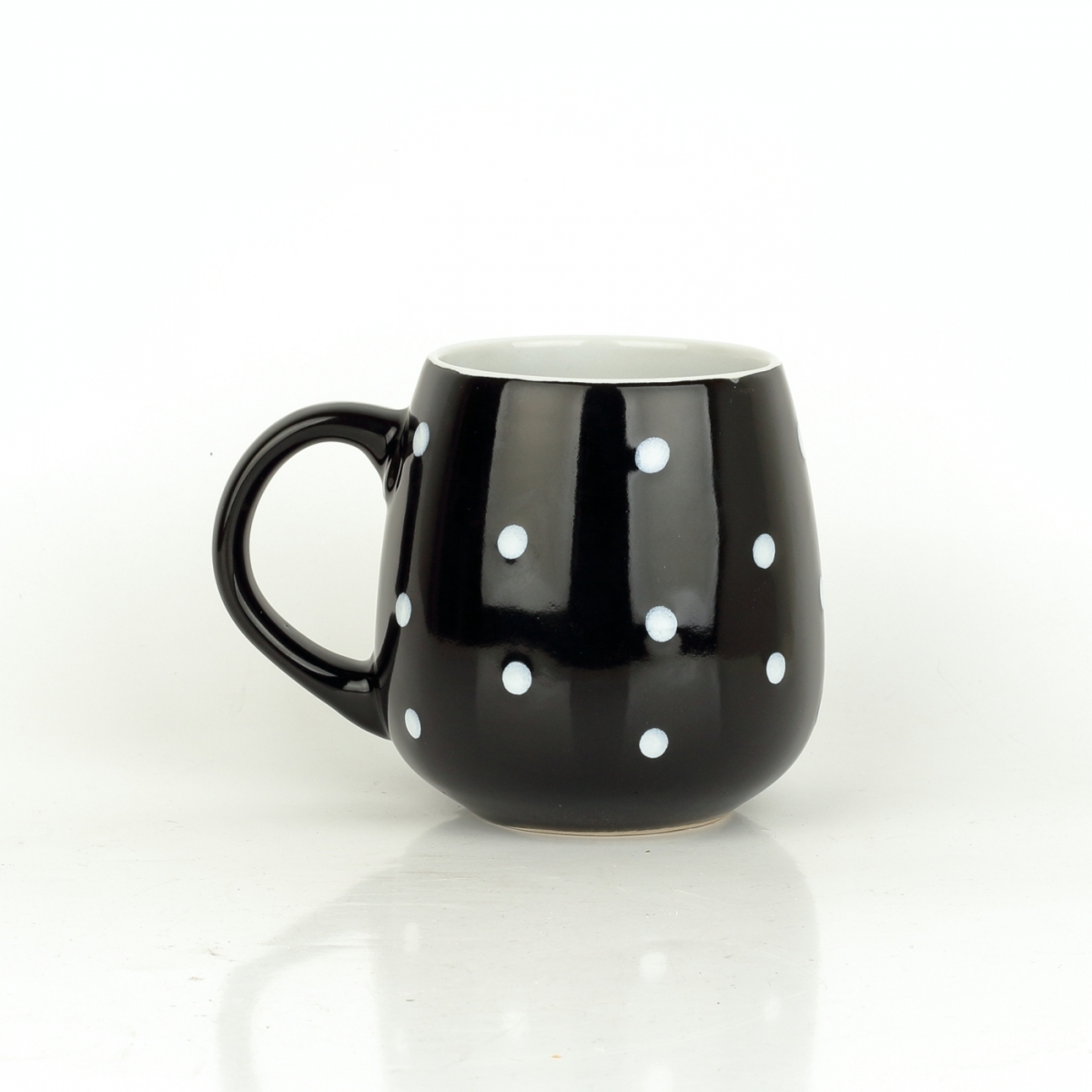 Pokiaľ pátrate po keramickom hrnčeku, do ktorého by ste si mohli pripravovať väčšiu dávku vášho obľúbeného čaju, práve ste naň narazili! Tvarom tak akurát bucľatý, s milým dekorom v podobe bielych bodiek, ktoré na čiernom podklade krásne vynikajú.