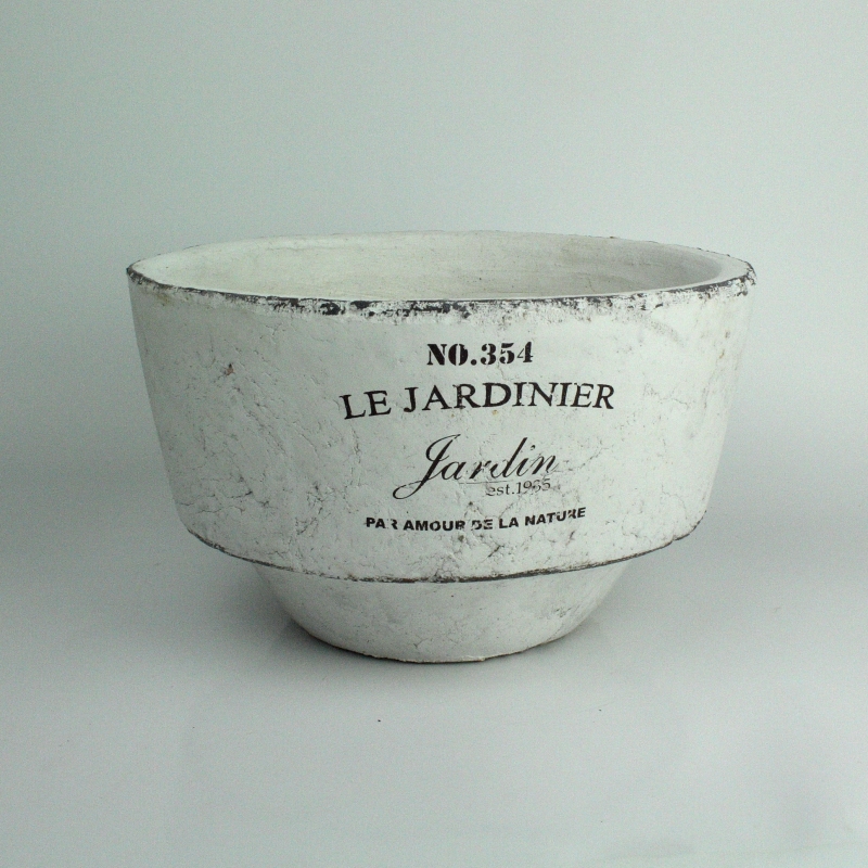 Keramický kvetináč s hrubším povrchom v bielej farbe s patinou.
