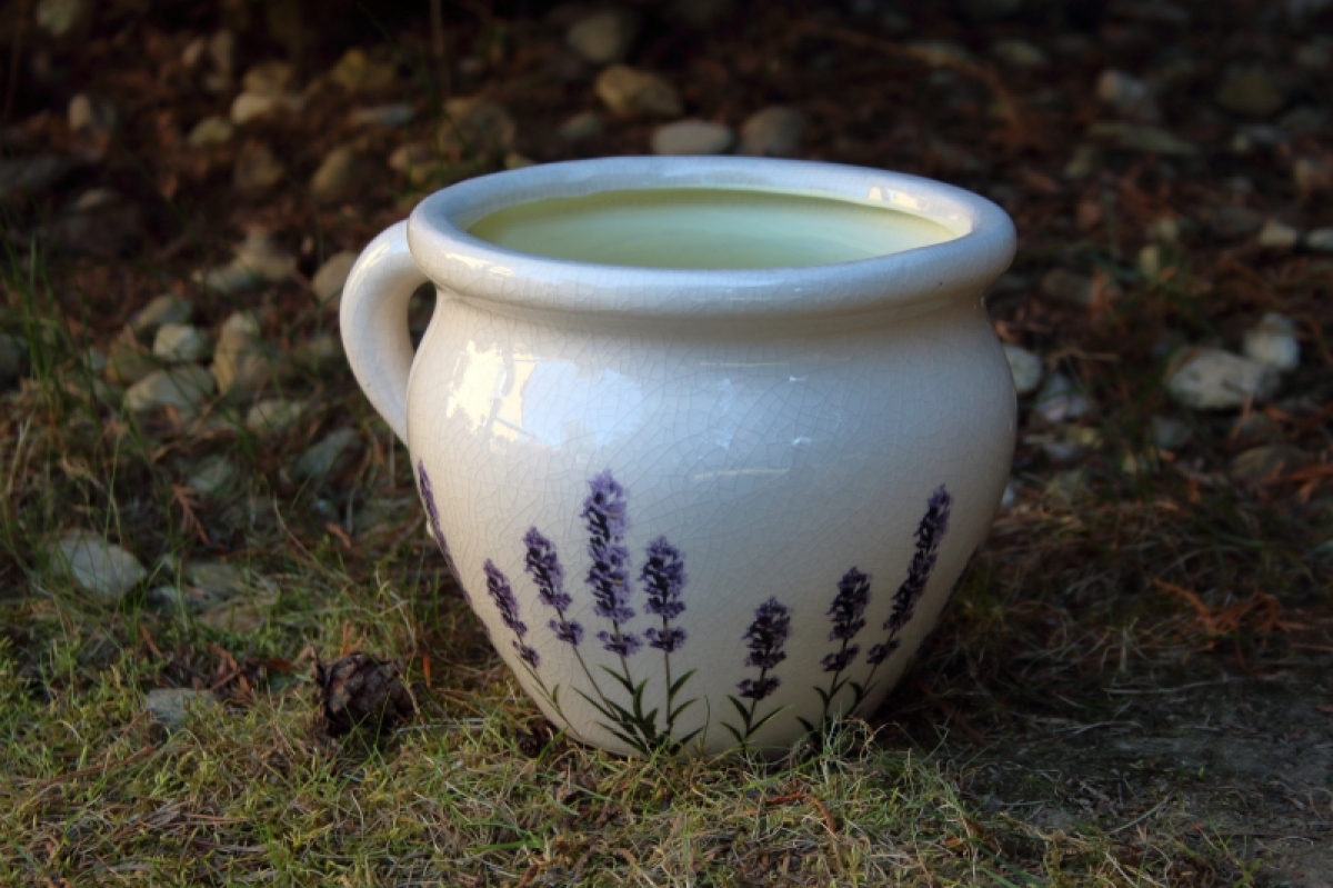 Keramický kvetináč s motívom levandule v štýle Provence