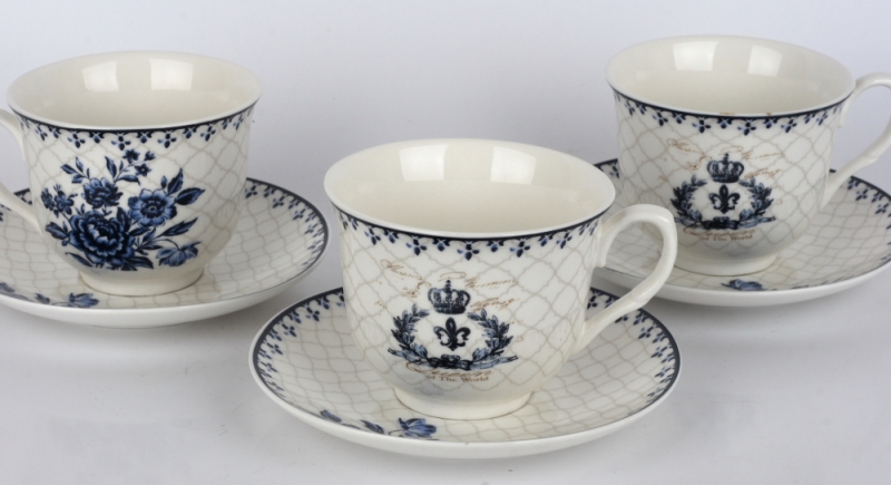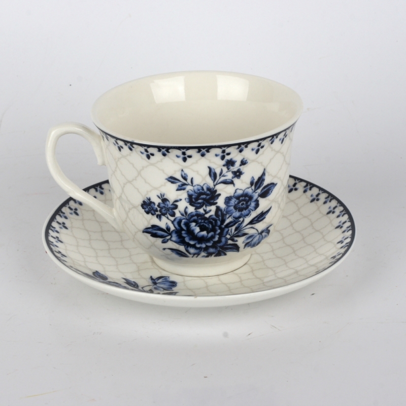 Keramický šálka s tanierikom modré kvety kvietok 9cm