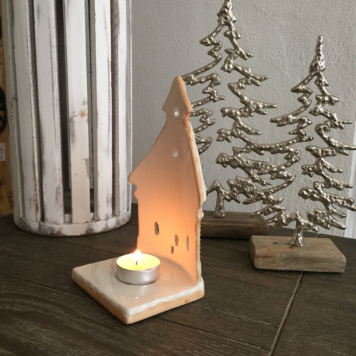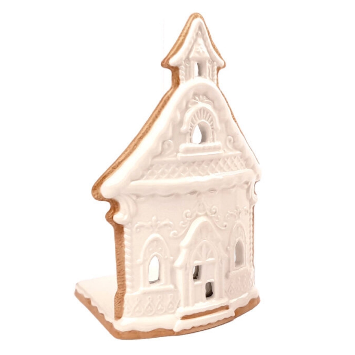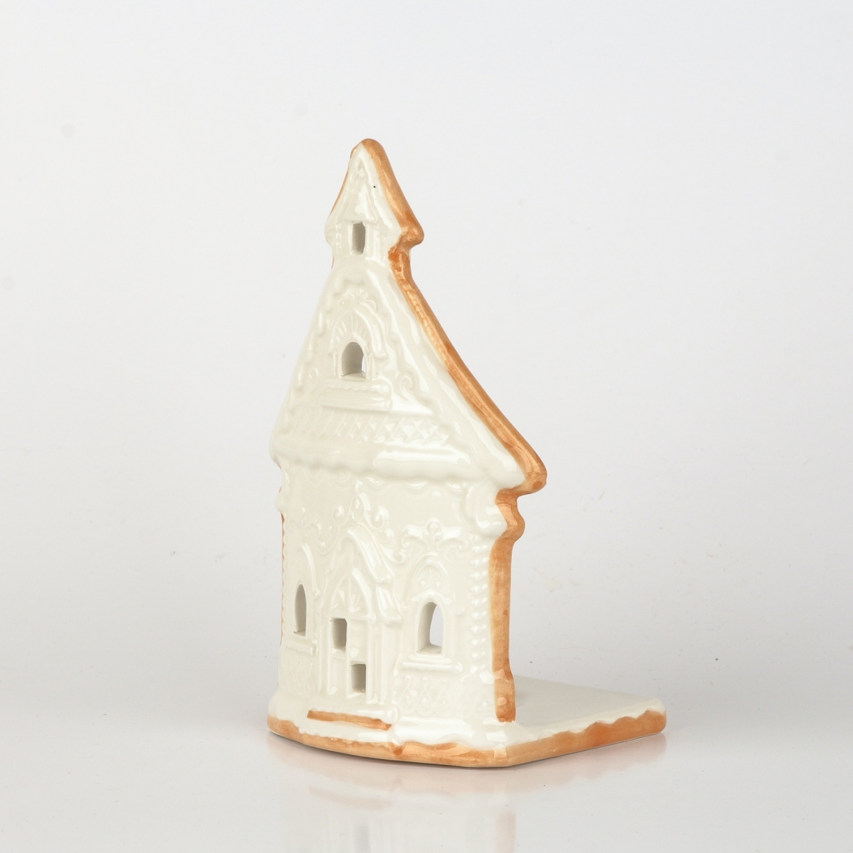 Keramický svietnik v podobe chalúpky vykrojenej z voňavého perníka a nazdobenej bielkovou polevou. Nenechajte sa nami ale nalákať na medovú maškrtu. Na tomto perníku by ste si určite vylámali zuby :-)