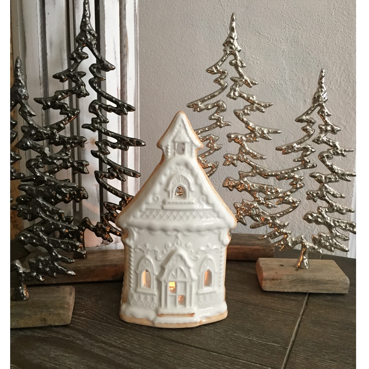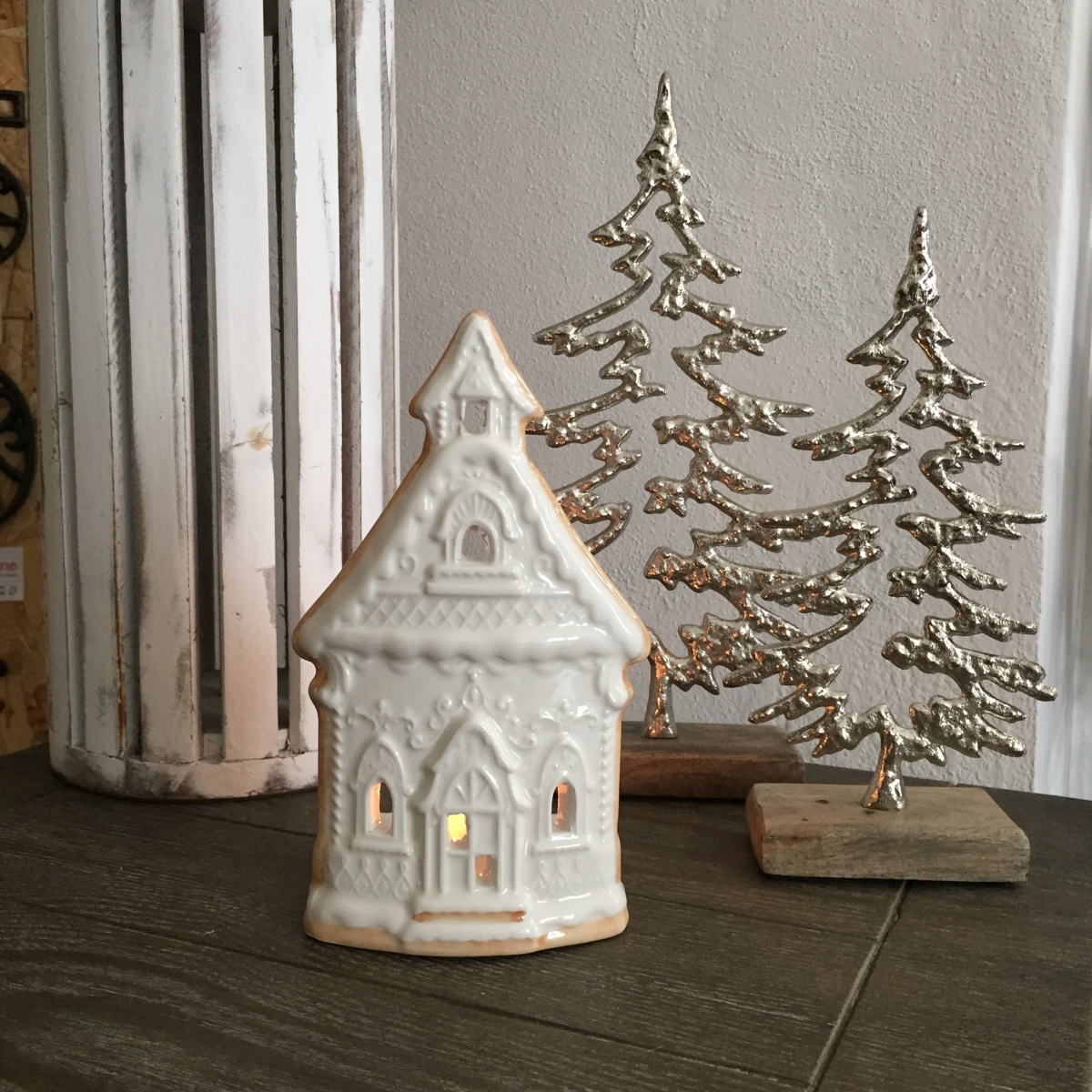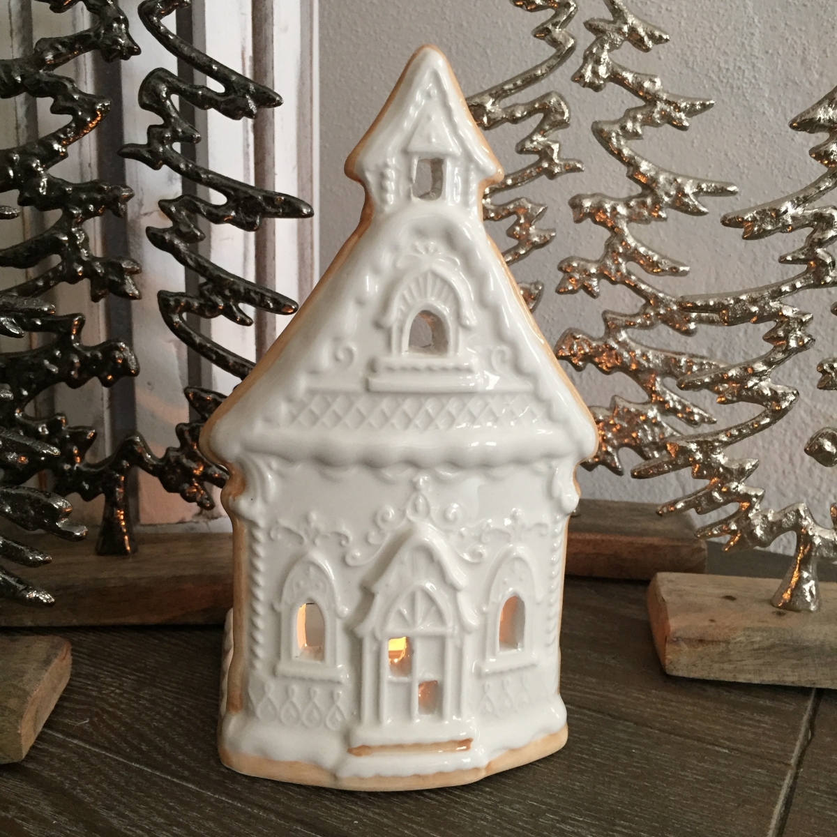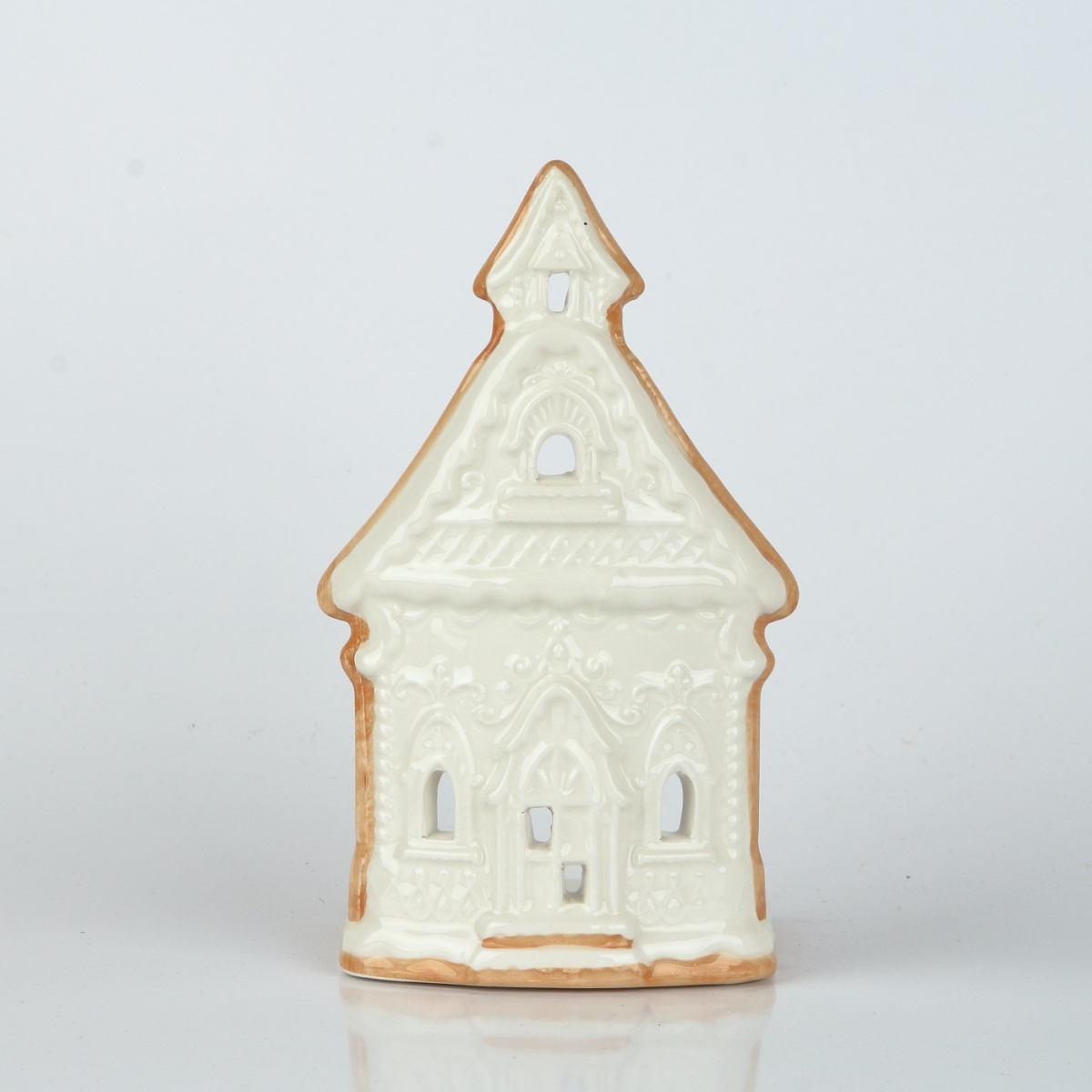 Keramický svietnik v podobe chalúpky vykrojenej z voňavého perníka a nazdobenej bielkovou polevou. Nenechajte sa nami ale nalákať na medovú maškrtu. Na tomto perníku by ste si určite vylámali zuby :-)