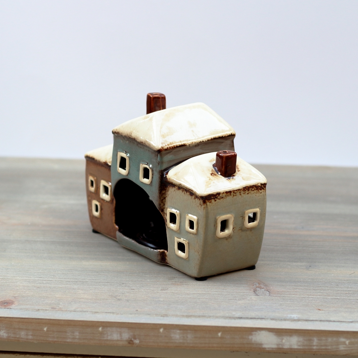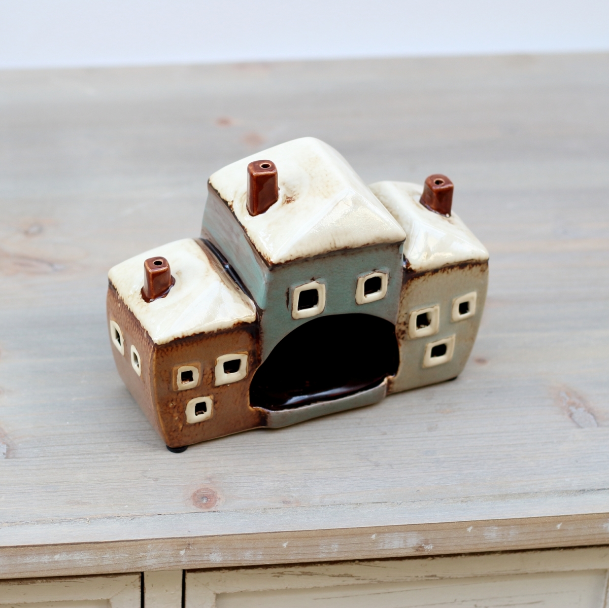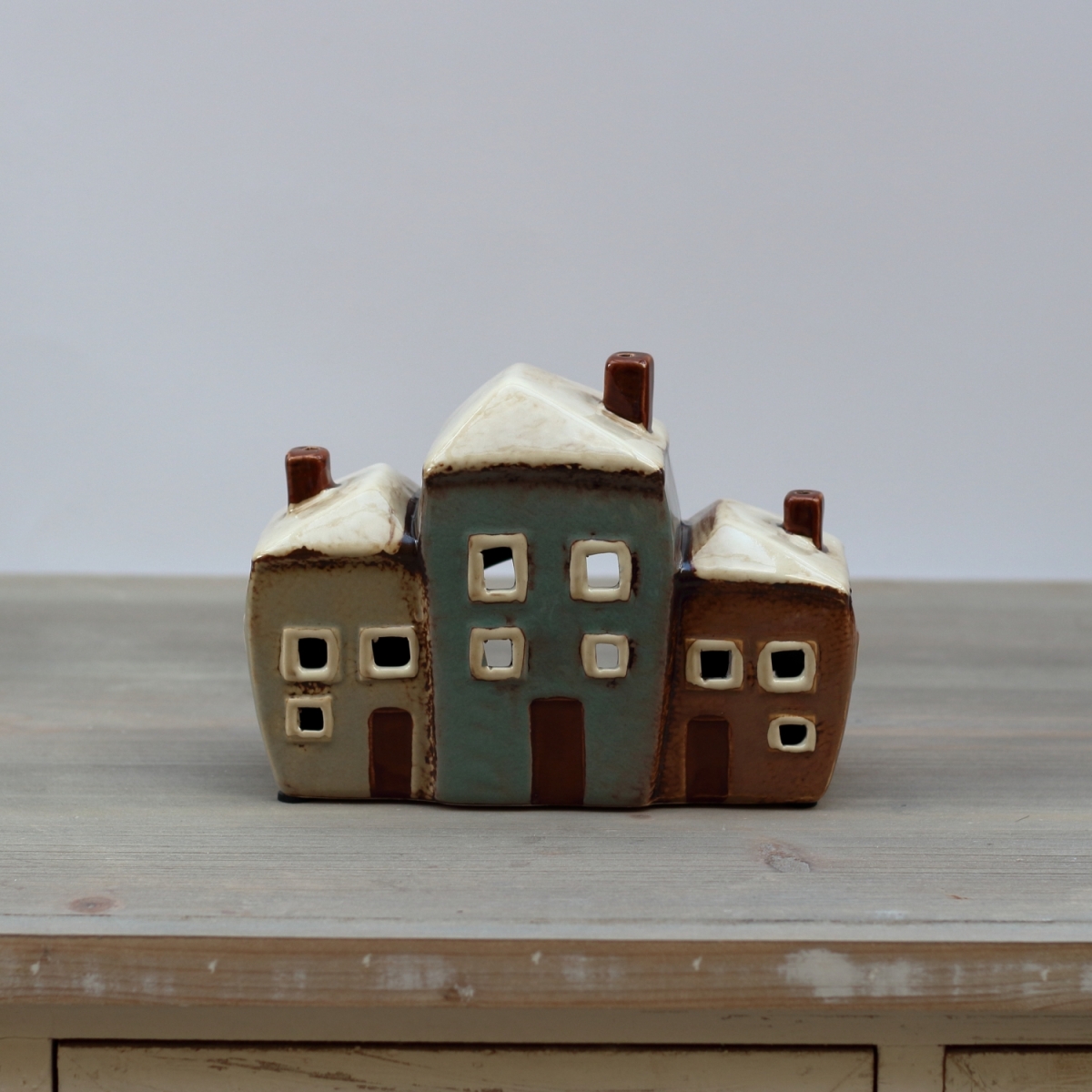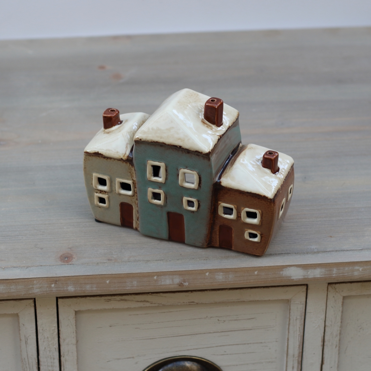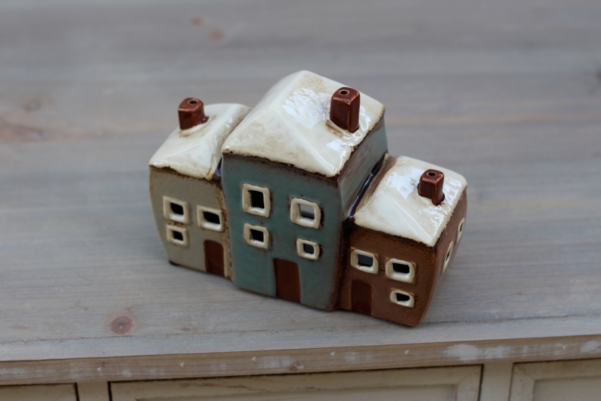 Keramický svietnik tri domčeky 19x8x13,5cm