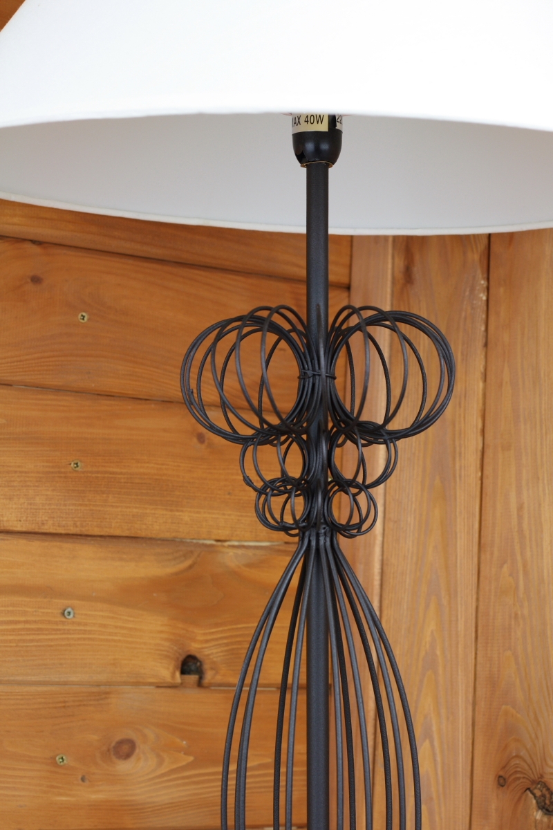Rozmery: kovová lampa s celkovou výškou 75cm (na žiarovku s menším závitom E14 typ, 40W), cylinder o spodným priemerom 39cm a horným priemerom 13cm