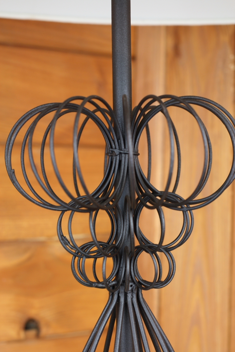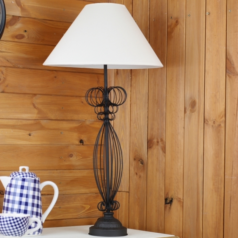 Honosná stolná lampa v retro štýle má veľmi elegantne spracovaný podstavec. Je celý z kovu a tvorí ho vytvarované kovové prúty. Veľmi elegantná lampa, ktorá pozdvihne vzhľad každého interiéru. Zdobená noha je doplnená jednoduchým tienidlom.