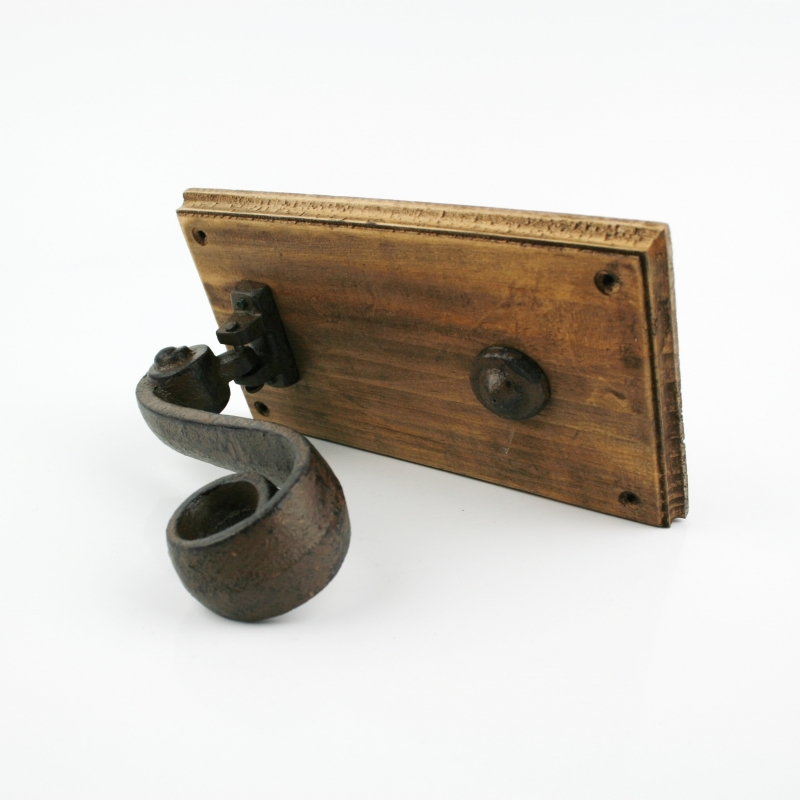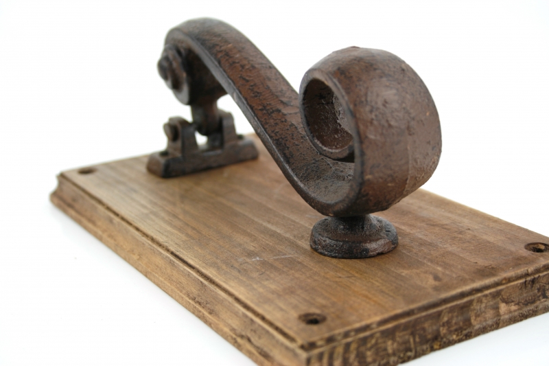 Liatinové klopadlo pekne padne do ruky, je pripevnenie k drevenej doske s otvormi na pripevnenie k podložke.