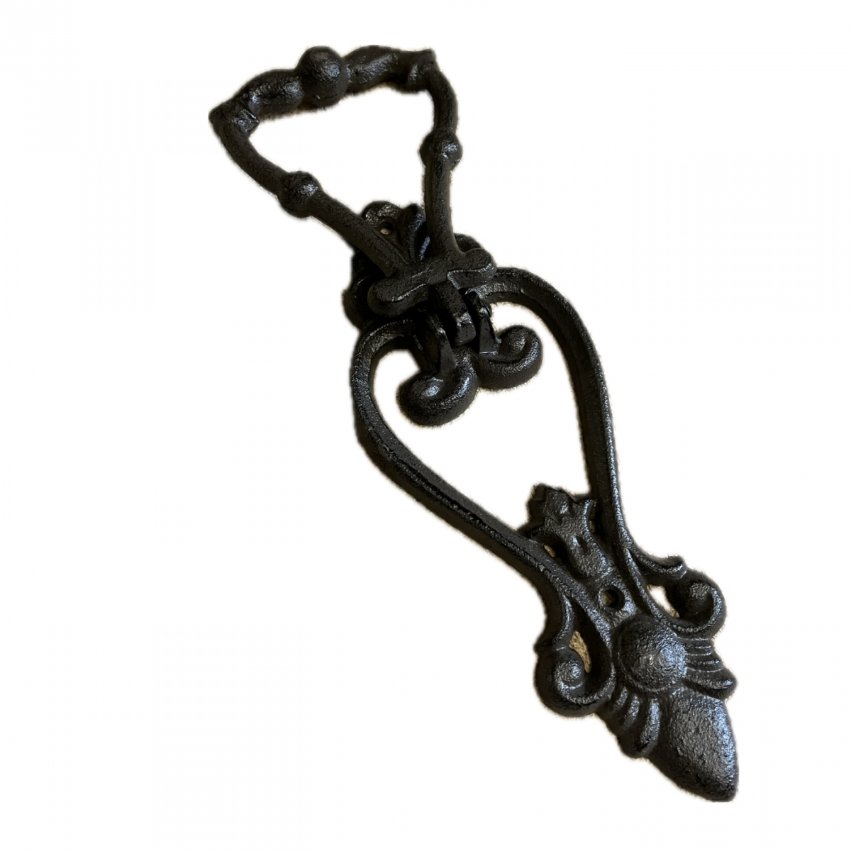 Klopadlo na dvere liatinové s dorazovou plochou. Klopadlo na dvere naráža do materiálu spoodnej časti klopadla a preto nepoškodí dvere, ako iné typy klopadiel, pri ktorých naráža klopadlo priamo na materiál dverí alebo vrát.
