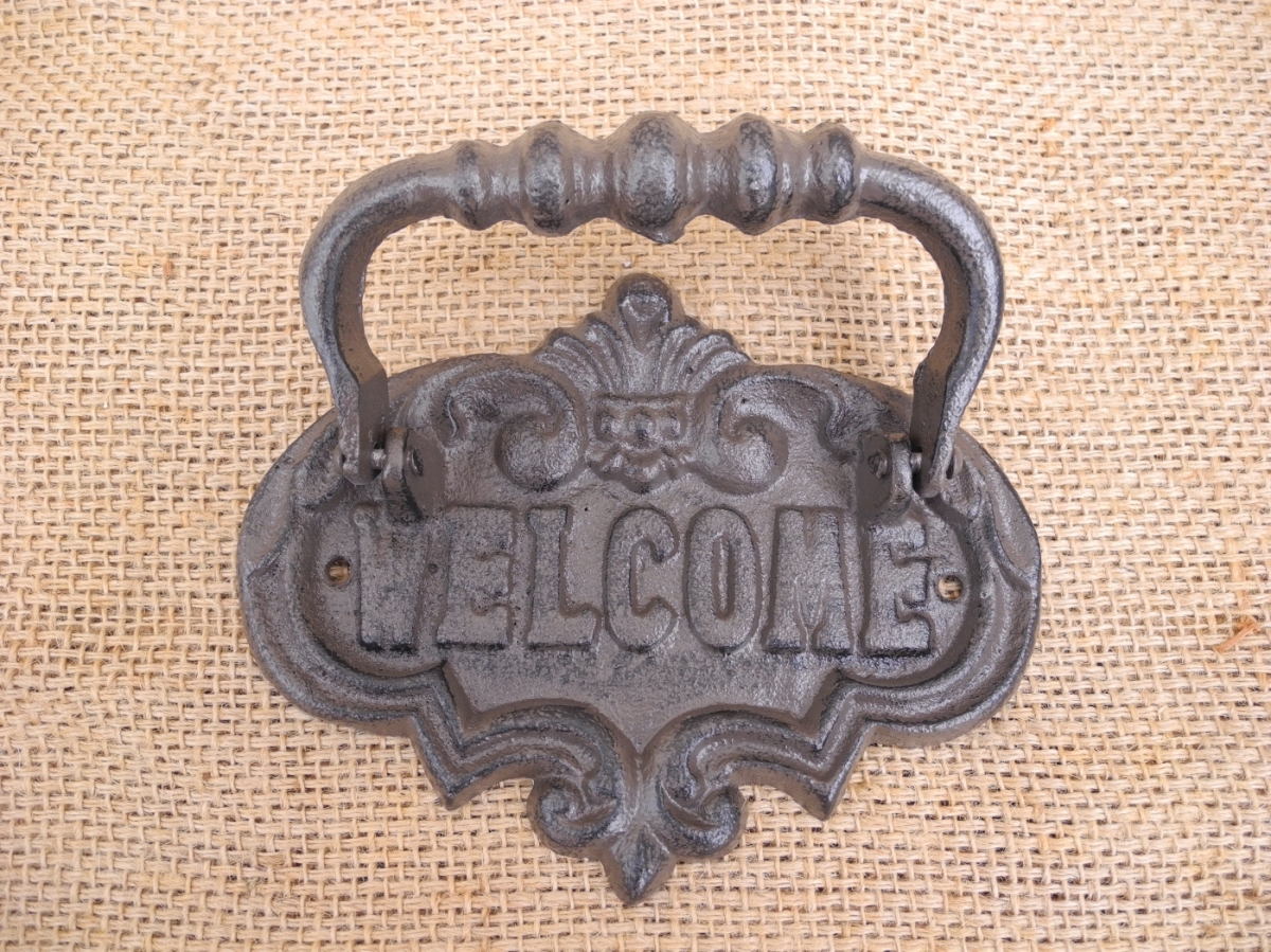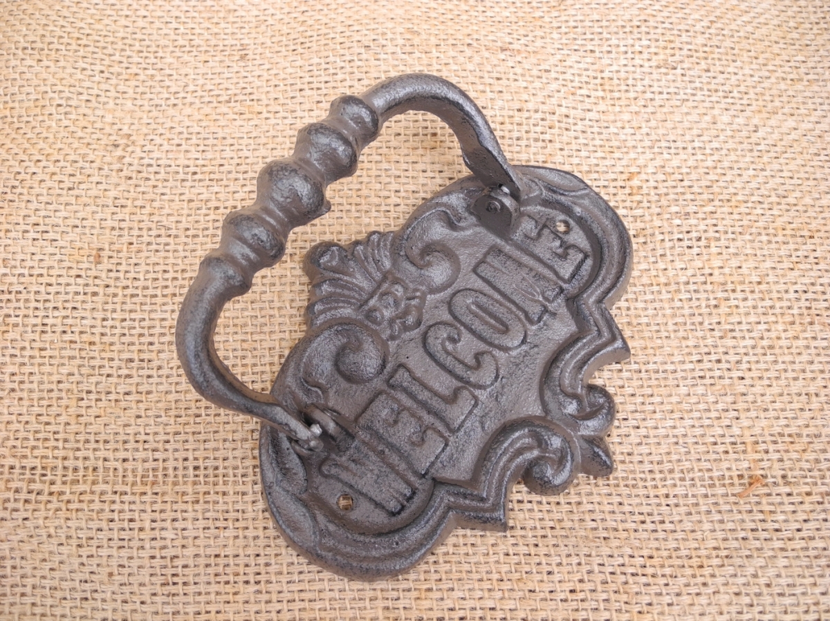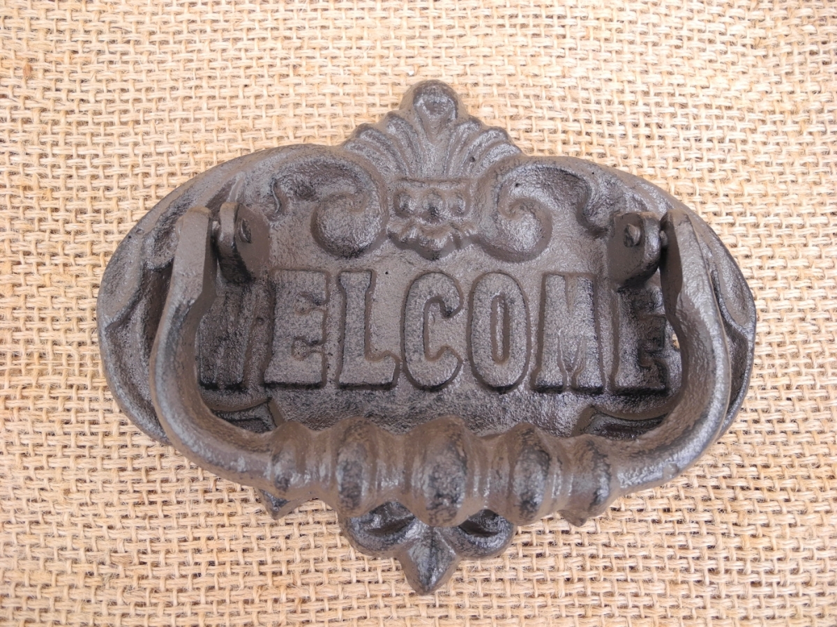 Klopadlo na dvere z liatiny s nápisom Welcome