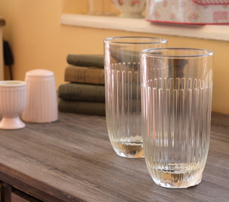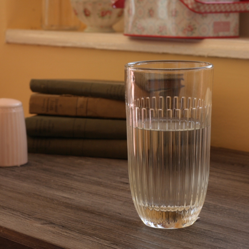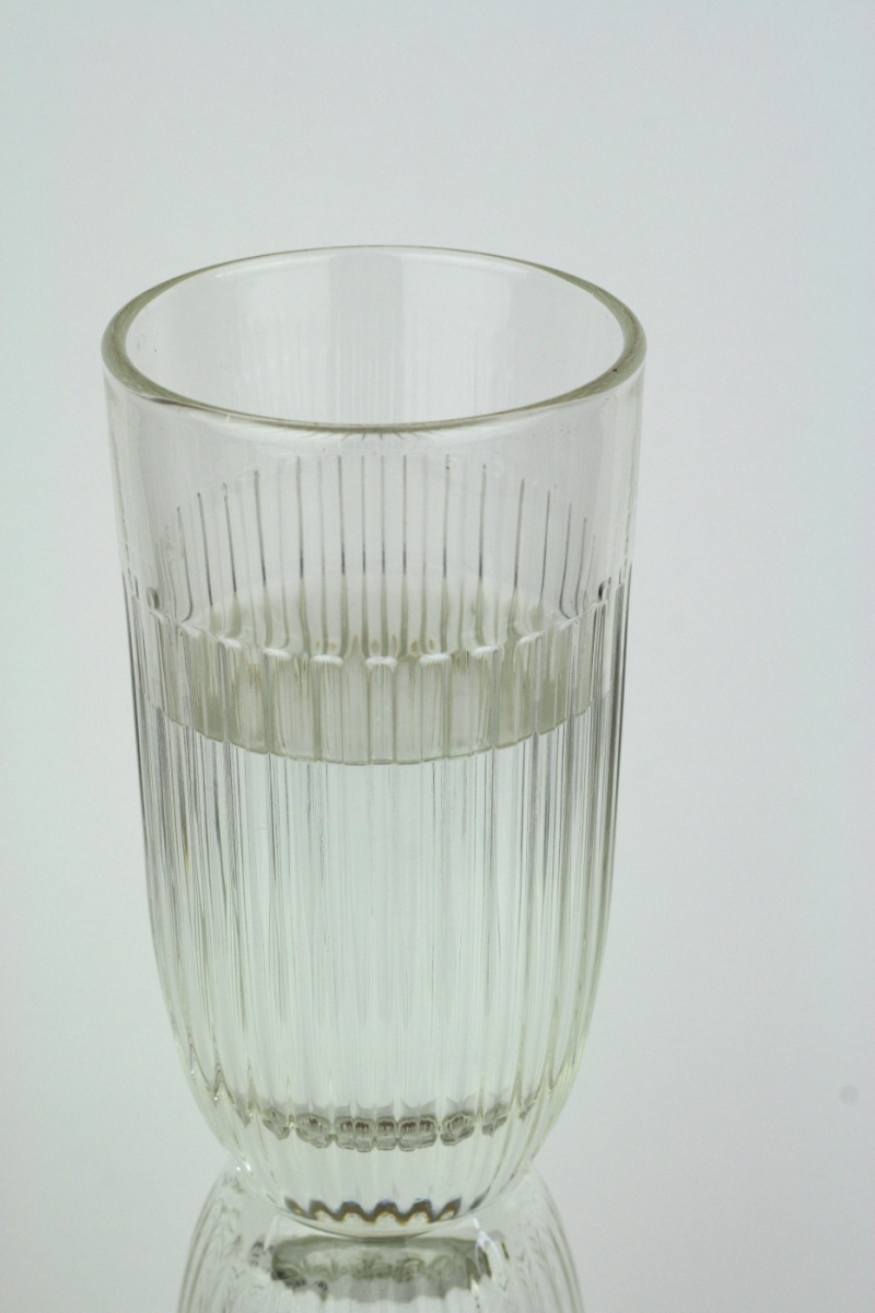 Pohár z číreho skla s rebrovaním je z dielne franouzské sklárne, ktorej tradícia Sha až do roku 1475. Francúzske sklo je veľmi kvalitné, je vhodné ich požívať na studené aj horúce nápoje, je možné vkladať do umývačky.