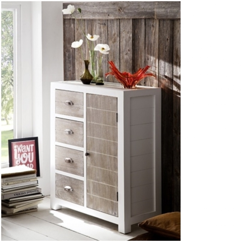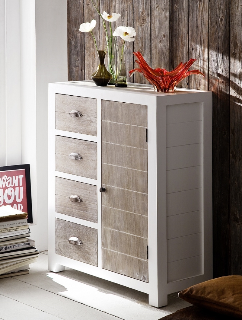 Komoda má štyri šuplíky a dvierka. Schová všetko potrebné a zároveň sa stane ozdobou celej miestnosti. Hodí sa do predsiene, obývacích izieb i kancelárií.