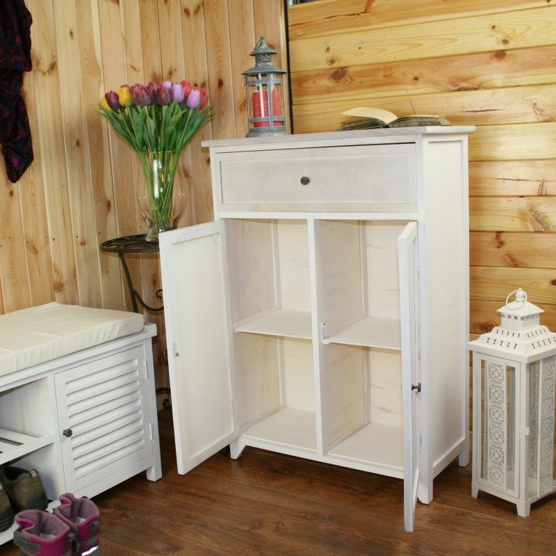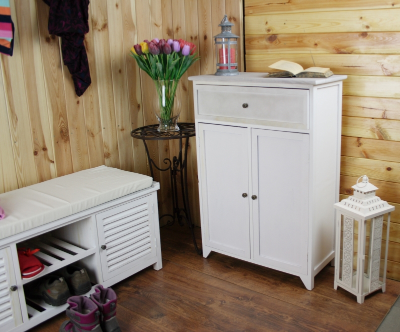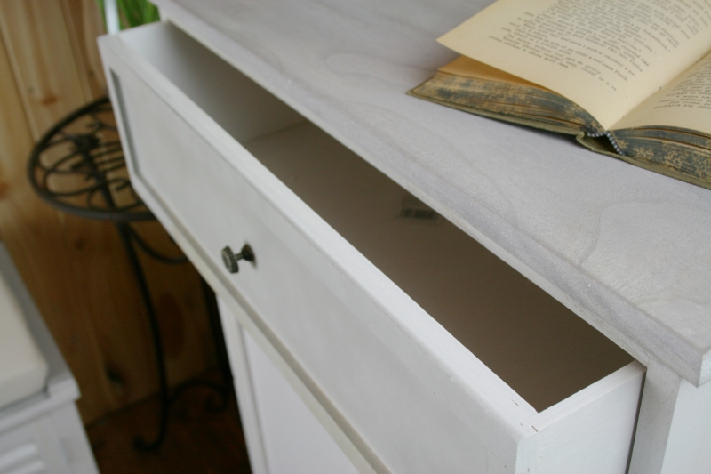 Komoda s patinou z kolekcie Vintage má rovnako ako ostatné kusy nábytku jednoduché tvary a príjemné svetlé farby. Štýlovo sa hodia do interiérov zariadených v štýle vidieka či Provence.