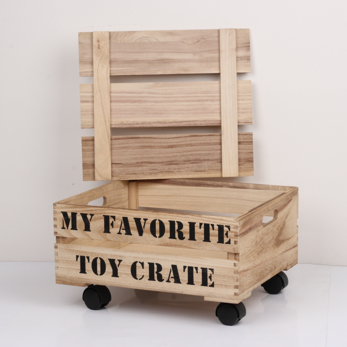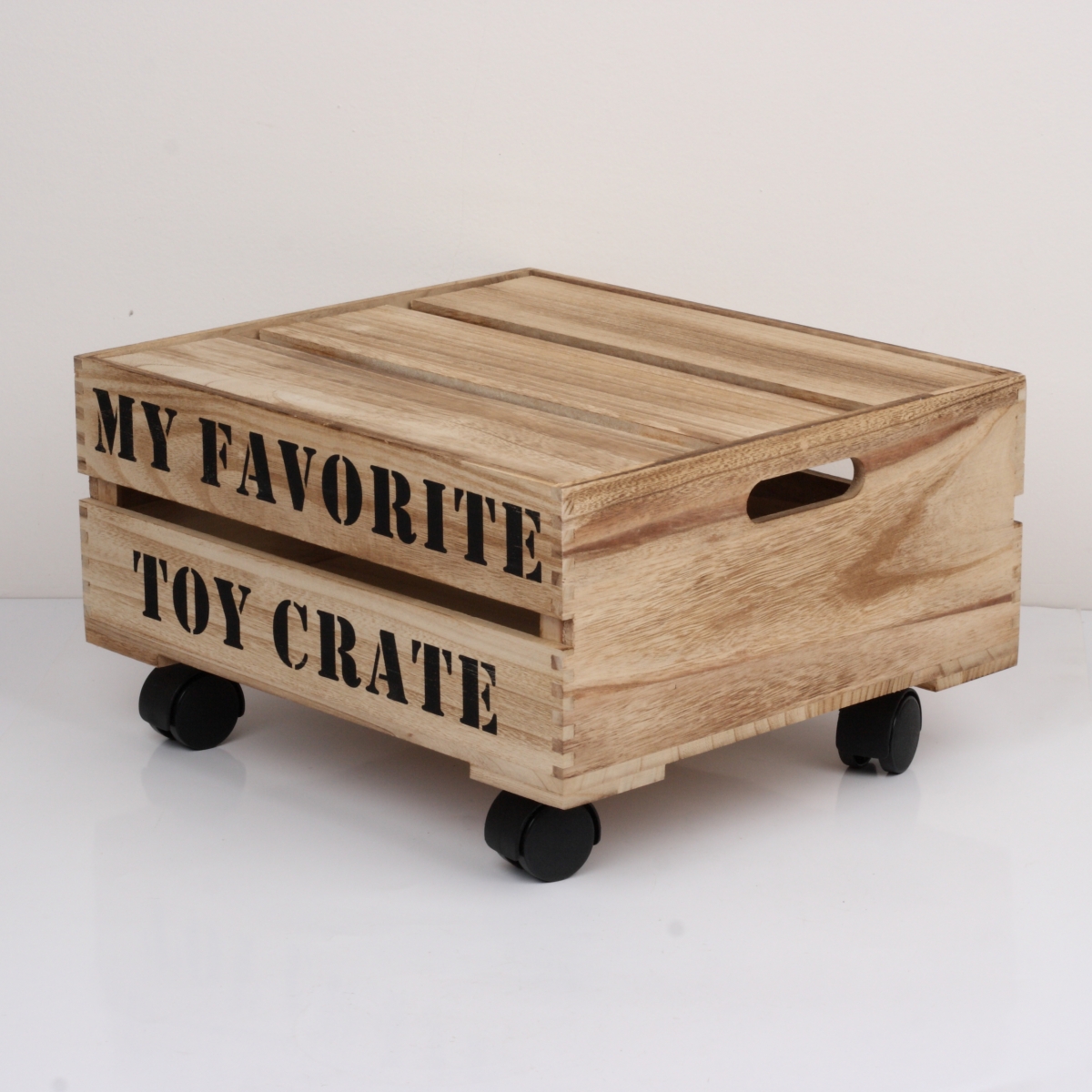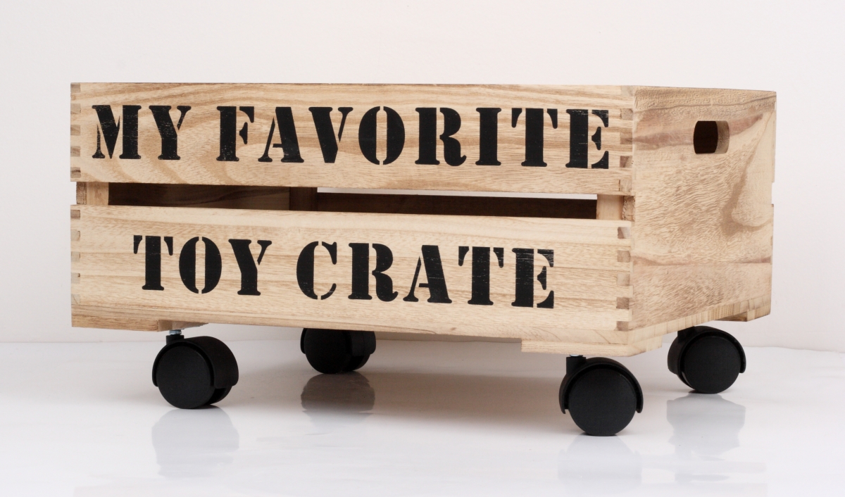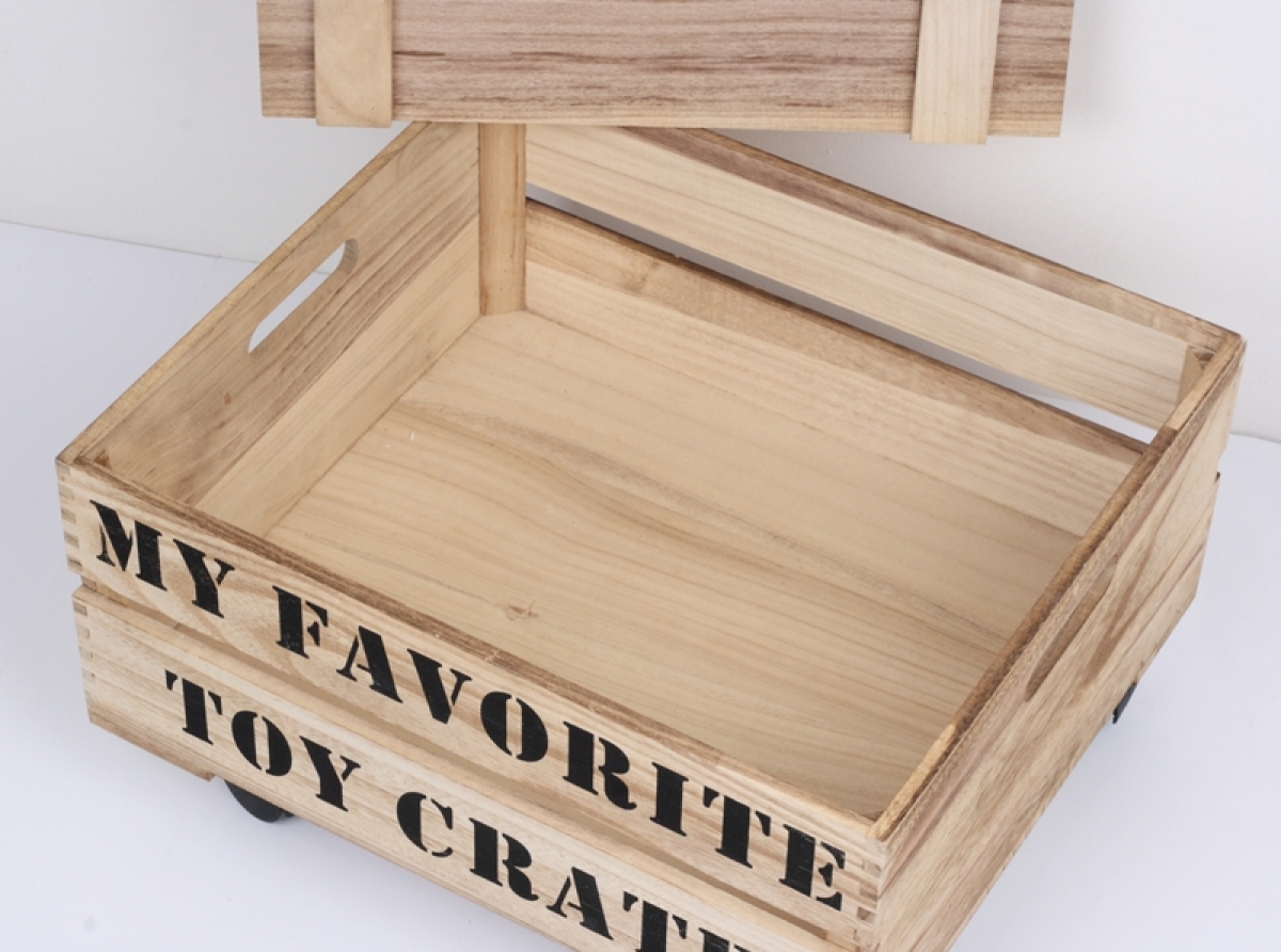 Jednoduchý surový vzhľad je doplnený o čierne detaily v podobe nápisu a koliesok. Veko debny možné odňať a využiť tak stolík aj ako úložný priestor na knihy a časopisy.