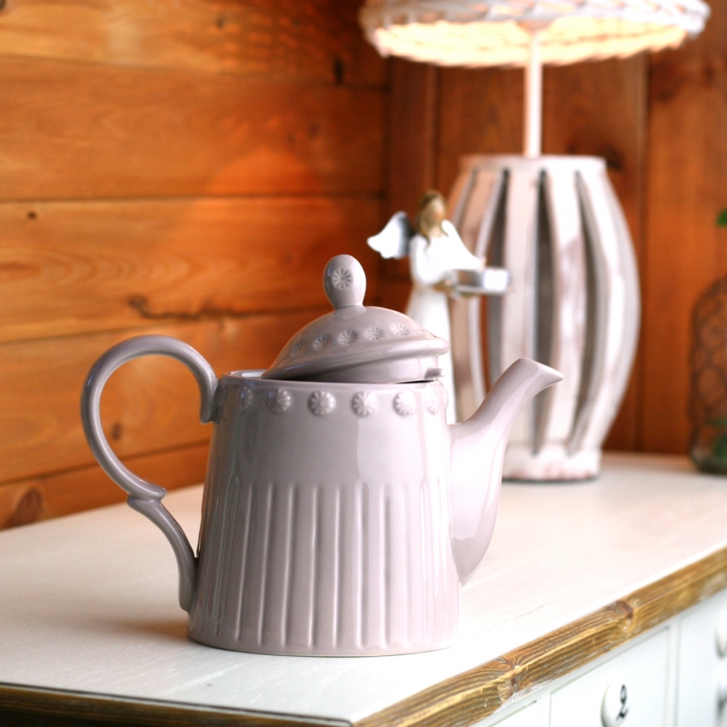 Kanvička na čaj keramická je súčasťou úplne novej kolekcie jedálenského servisu v príjemnej pastelovej farbe so zdobením v podobe malých kopretinek.