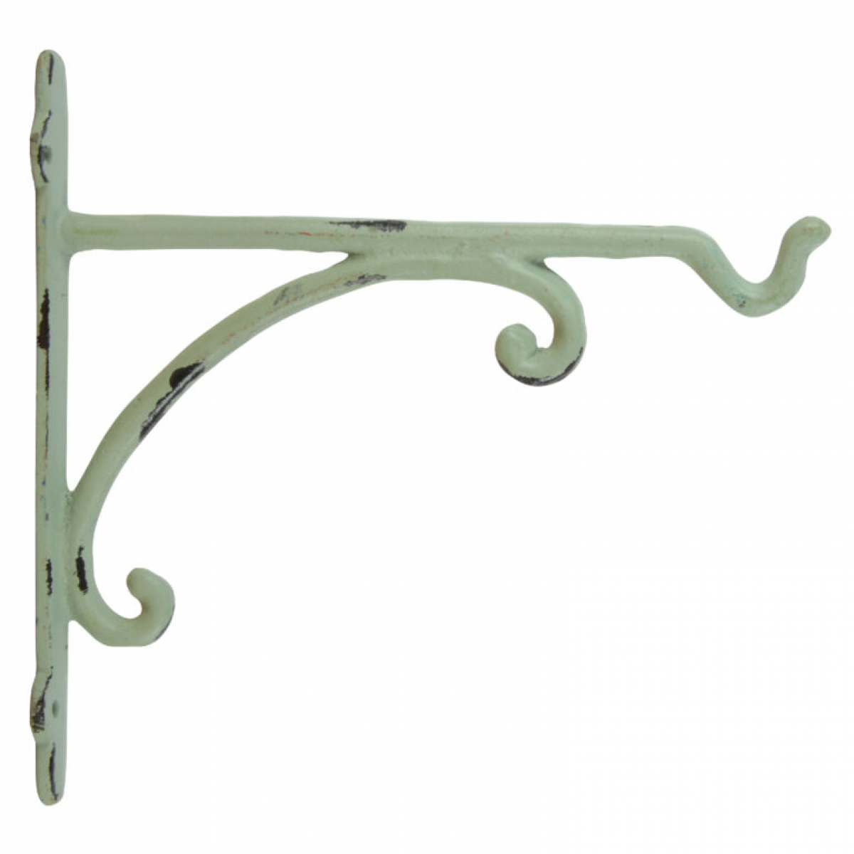 Konzola na stenu v retro zelenom odtieni s patinou, so štyrmi otvormi na pripevnenie na stenu