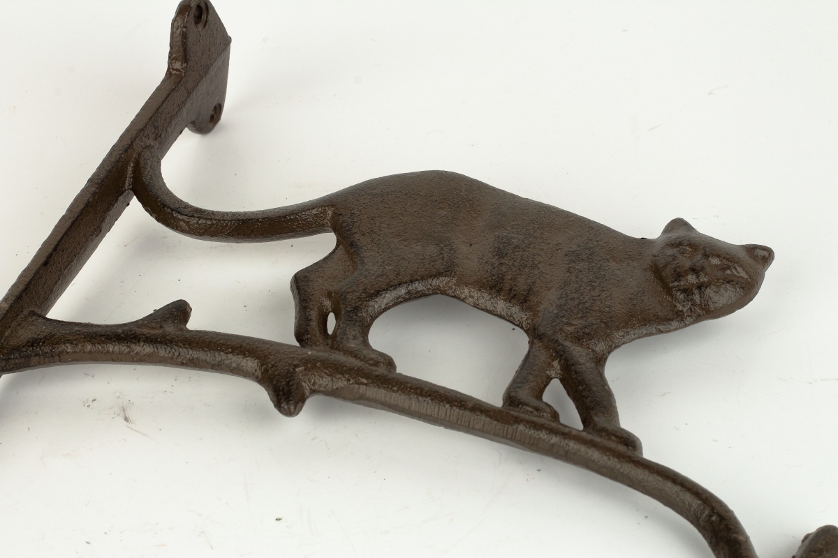 Konzola s mačkou na zavesenie kvetináča 18,5 x 12,5 x 3 cm liatina