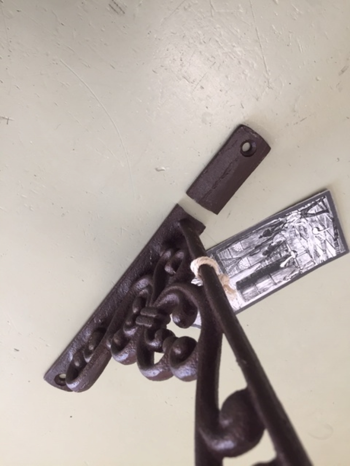 Konzolka slouží k zavěšení různých dekorací či závěsných květináčů. Je vyřazená z důvodu ulomení části pro montáž konzole.