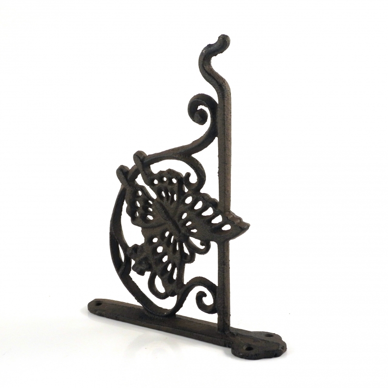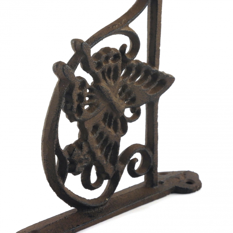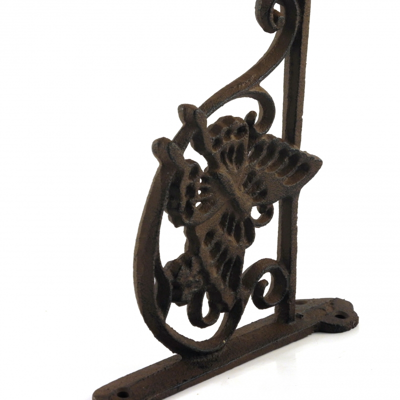 Konzole na zavesenie napr závesného kvetináča má rozmery 21 x 4,3 x 17. Iste vás zaujme na prvý pohľad vďaka ozdobe v tvare motýľa, ktorý je dominantný na tejto konzole. Jemný motýľ aj celá konzoly sú vyrobené z odolnej liatiny, takže sa nemusíte báť zavesiť konzolu aj tam, kde bude musieť odolávať výkyvom počasia.