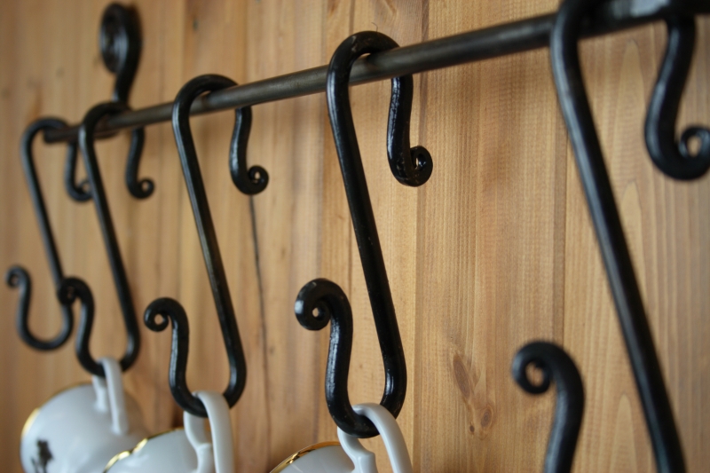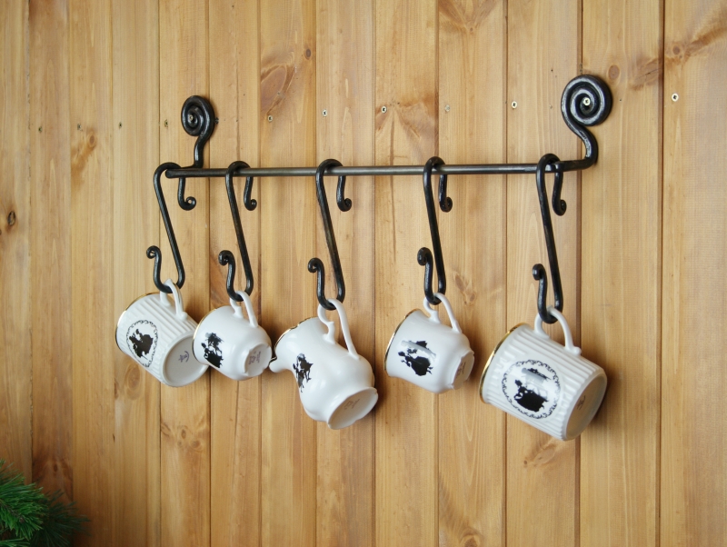 Konzola do kuchyne z dielne šikovného slovenského kováča. Háčiky sú veľmi praktické, posuvné a naozaj na čokoľvek - hrnčeky, utierky, sáčky s bylinkami či kuchynské náčinie.