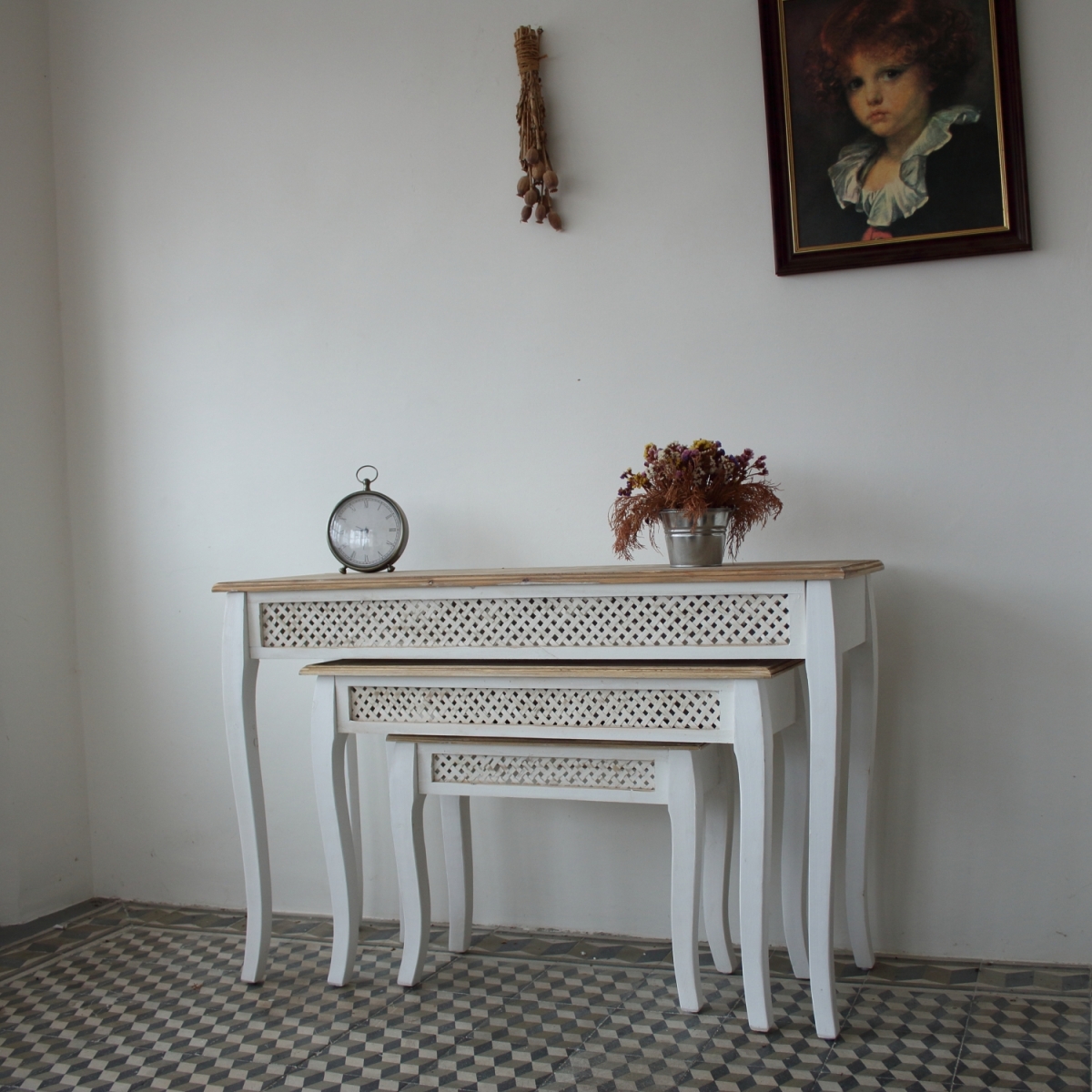 Konzolové stolíky vo vintage prevedení - set troch kusov
