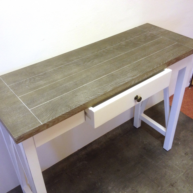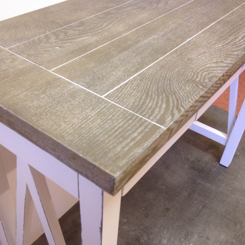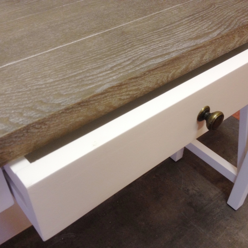 Konzolový stolík má dosku prírodnej farbe dreva s patinou, zvyšok je ladený do bielej farby s výrazným otlčeným vzhľadom. Ten k vidieckemu štýlu neodmysliteľne patrí!