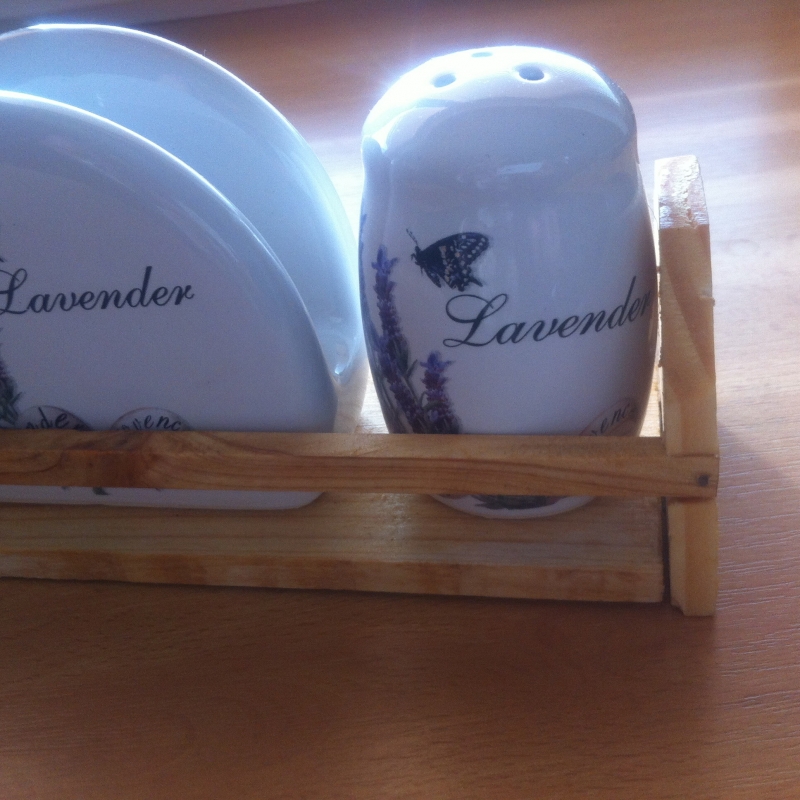 Pepř a sůl a stojánek na ubrousky - vada dřevěného podstavce.