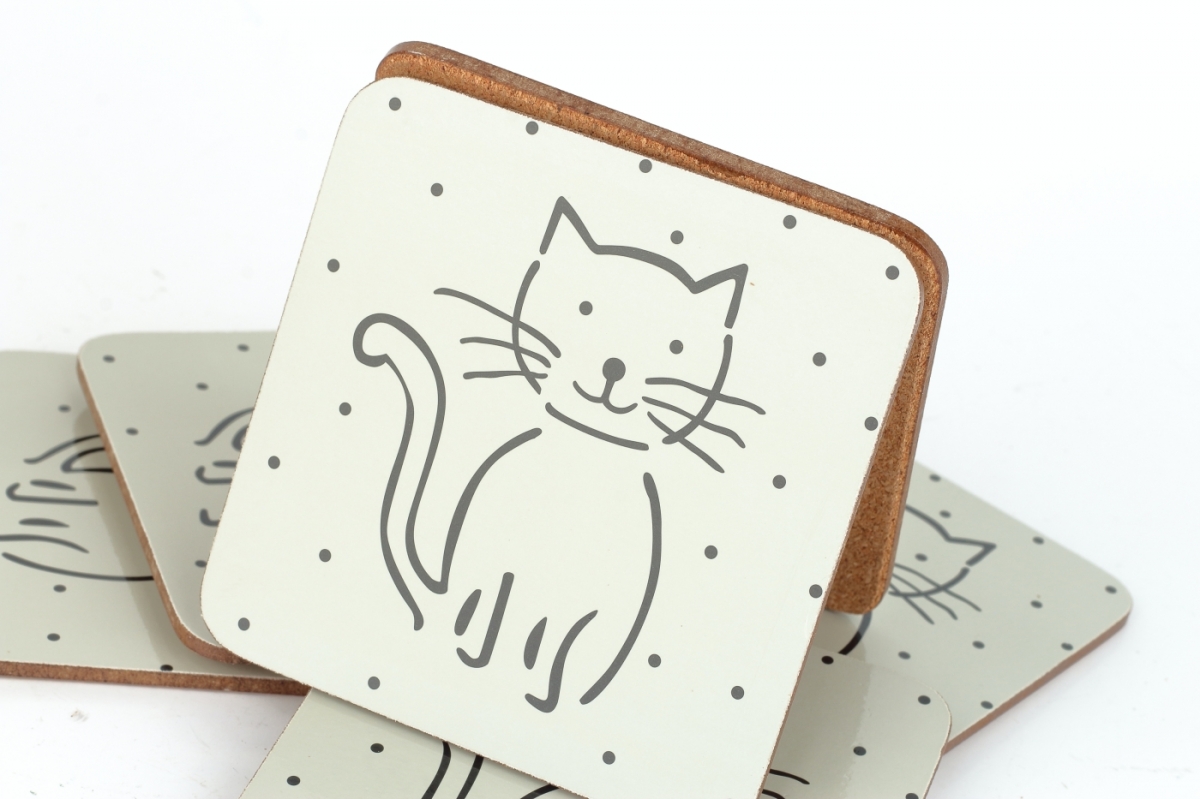 Korkové prestieranie 10x10 cm s mačacím motívom poteší nielen milovníkov mačiek.