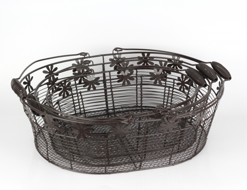 Kôš drôtený s kytičkou súprava 3 ks 43/37/32 cm je veľmi univerzálnym kúskom do domu aj na záhradu. Košíky môžu slúžiť ako úložný priestor snáď na všetko, čo Vás napadne. V kúpeľni na kozmetiku, v kuchyni na ovocie alebo ako originálny obal na kvety.