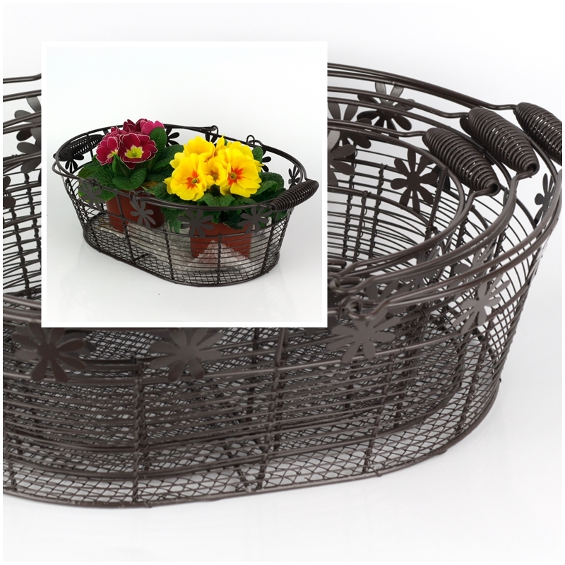 Kôš drôtený s kytičkou súprava 3 ks 43/37/32cm