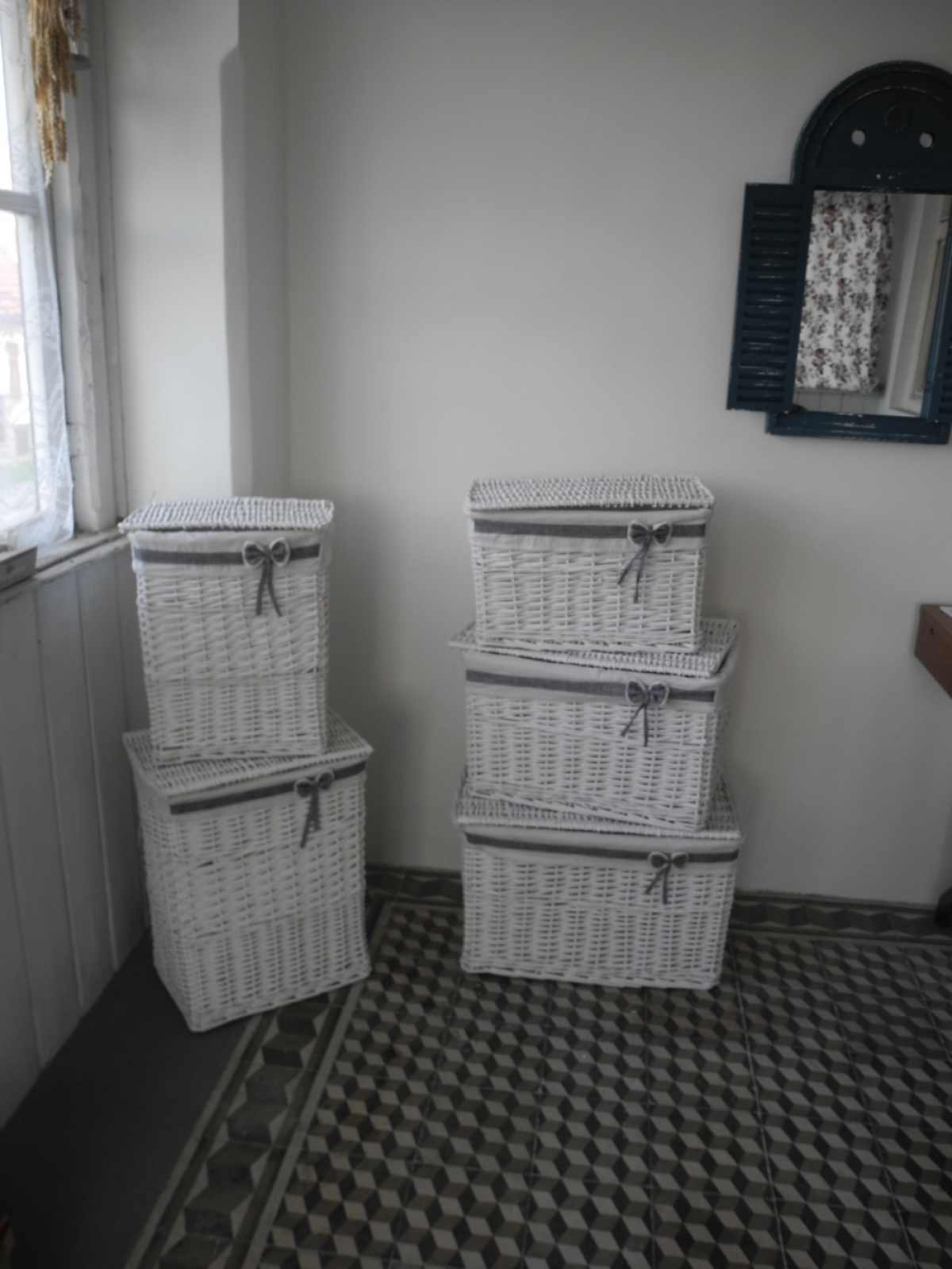 Kôš na bielizeň biely má uvnitrř balněný povlak, ktorý ide ľahko vybrať a vyprať.
