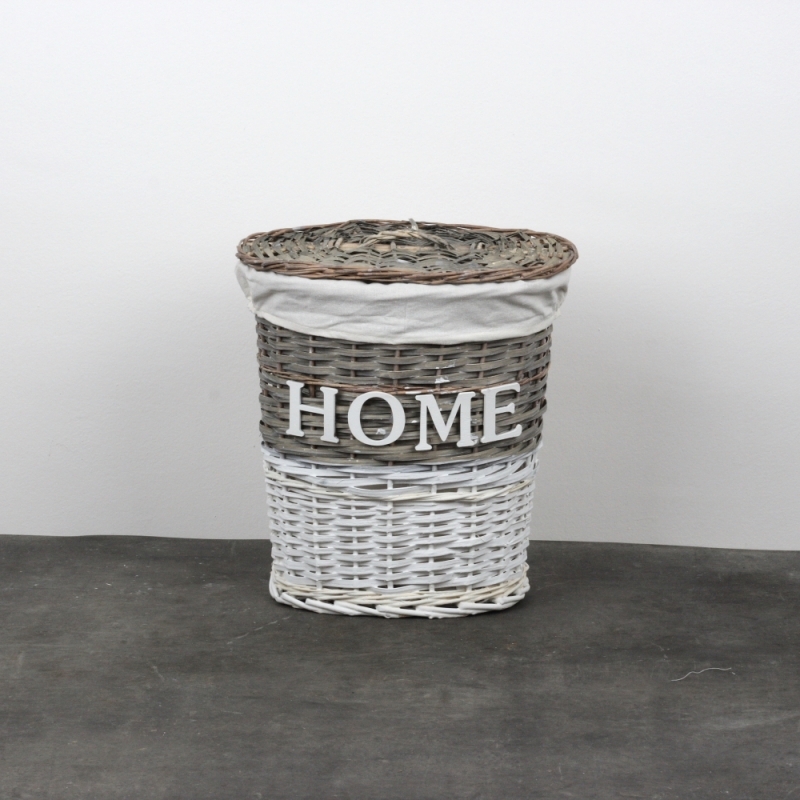 Kôš na bielizeň má praktické veko s uchom a uvnotř koša je látkový poťah (možno vybrať a vyprať). Kôš je dvojfarebný a na prednej strane je drevený nápis HOME.