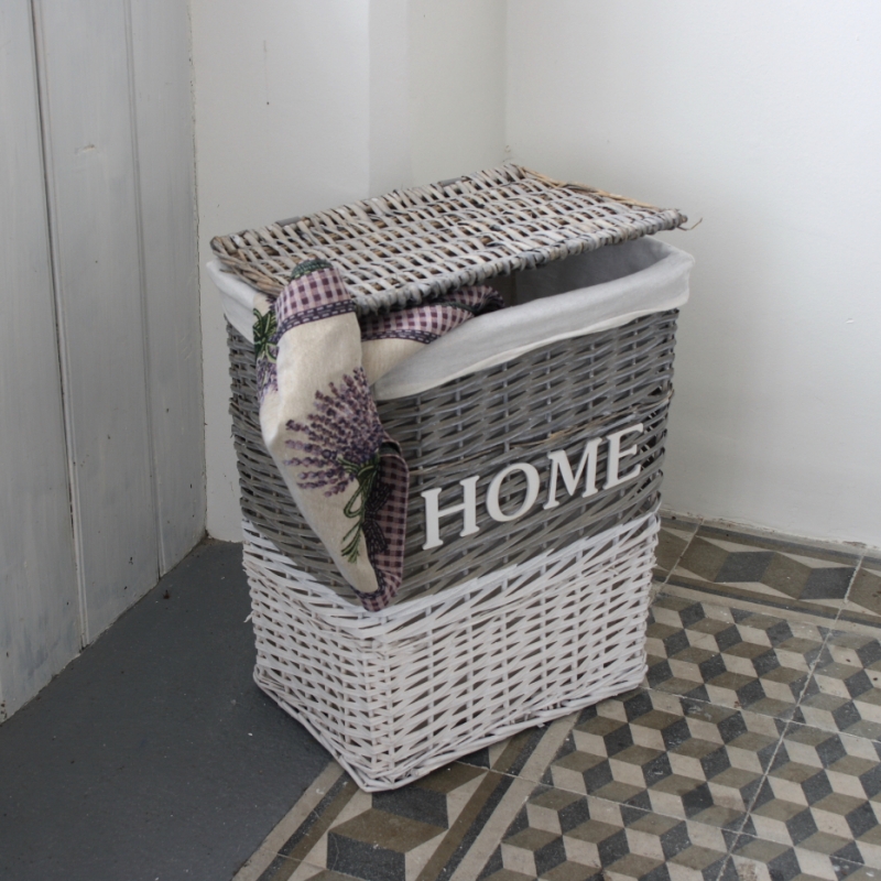 Kôš má praktické veko, ktoré všetko schová a kôš tak bude ozdobou interiéru. Kôš je kombinovaný do tńů šedej a bielej farby, na prednej strane je veľký nápis HOME.