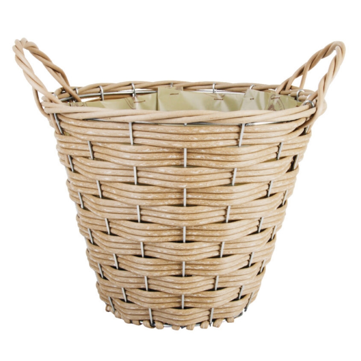 Tento kôš má nielen plastovú vnútornú vrstvu, ale aj dve praktické a pevné prútené uši. Jeho základná kostra je tvorená drôtmi, takže je veľmi pevný. Vášmu domovu dodá útulný a rustikálny dotyk.