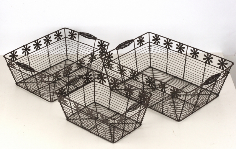 Košík drôtený s kvietkami (sada 3ks) 25/31 / 37cm môže slúžiť na odkladanie drobností, kozmetiky alebo kľúčov. Košíkov nie je nikdy dosť!