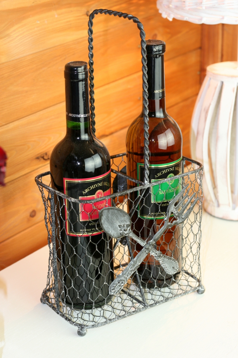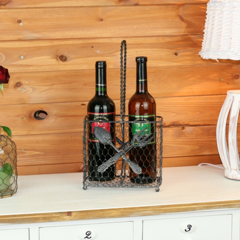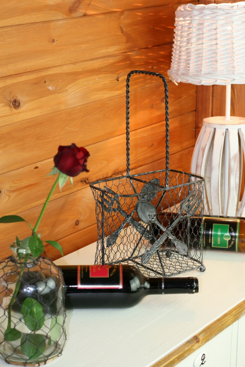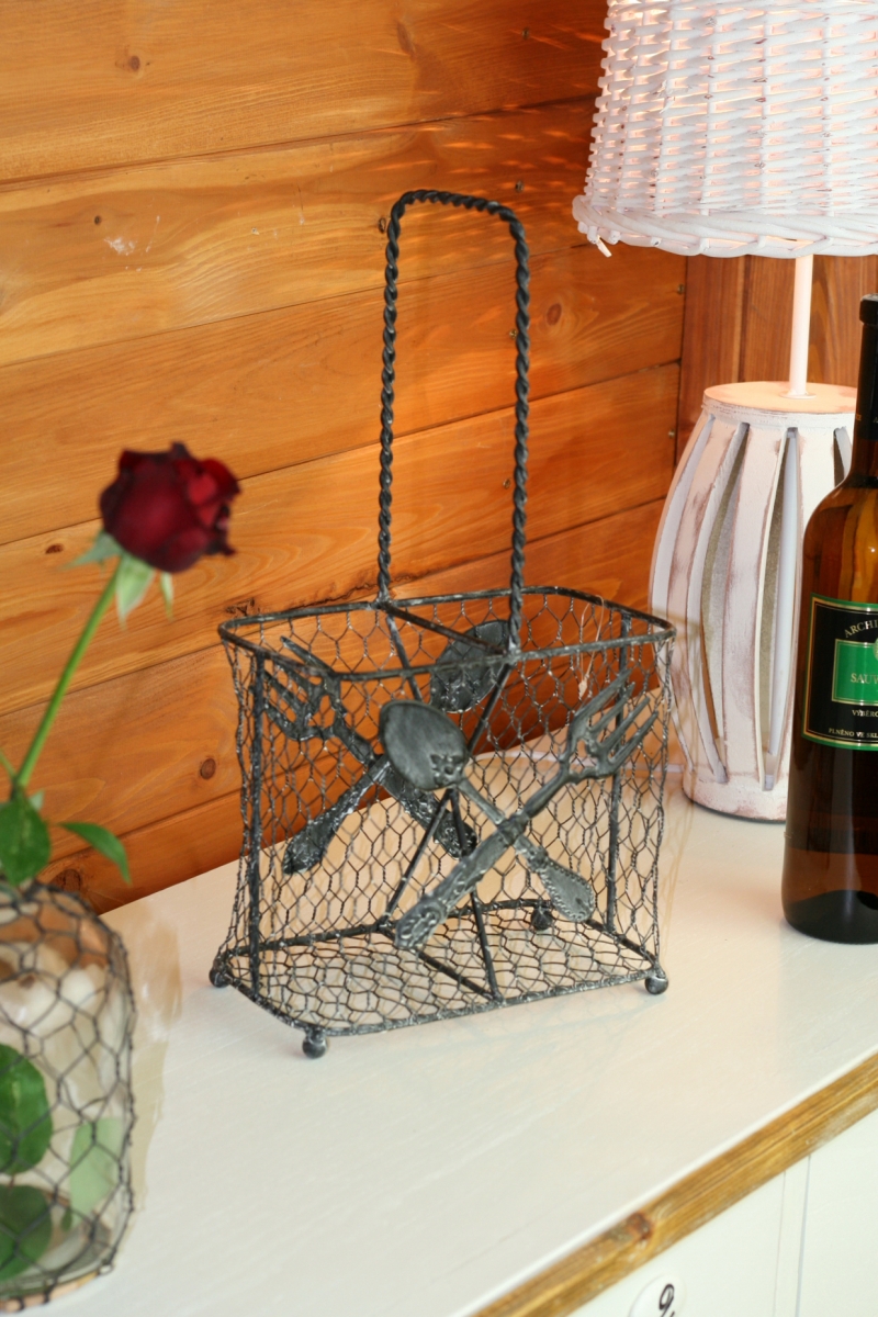 Košík na príbory o rozmere 21x38x12cm , môžete použiť ako držiak na dve láhbe vína , alebo pri vložení obrúskov , tiež ako košík na príbory .