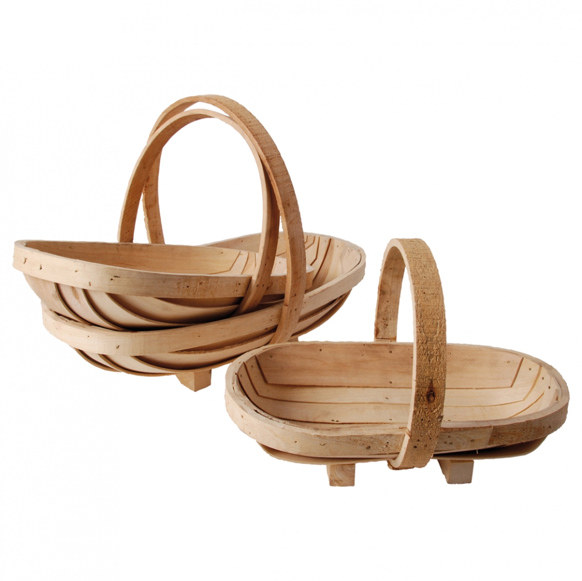Set troch rustikálnych plytkých košíkov z vŕbového dreva v prírodnom prevedení, nájde vo vašej domácnosti uplatnenie praktické aj dekoratívne. Využiť ich je možné na zber ovocia, zeleniny i kvetín, ale bude skvele vyzerať aj ako súčasť dekorácie, napríklad v spojení so suchou väzbou.