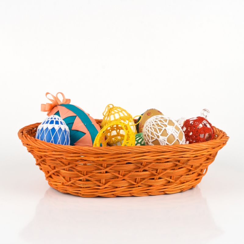 Košík proutěný oranžový je vhodná dekorace do vašeho bytu či domu. Vhodný pro použití na velikonoční dekoraci. Alternetivní název: ošatka na pečivo, koš na pečivo. Rozměr výrobku 27x19x8cm