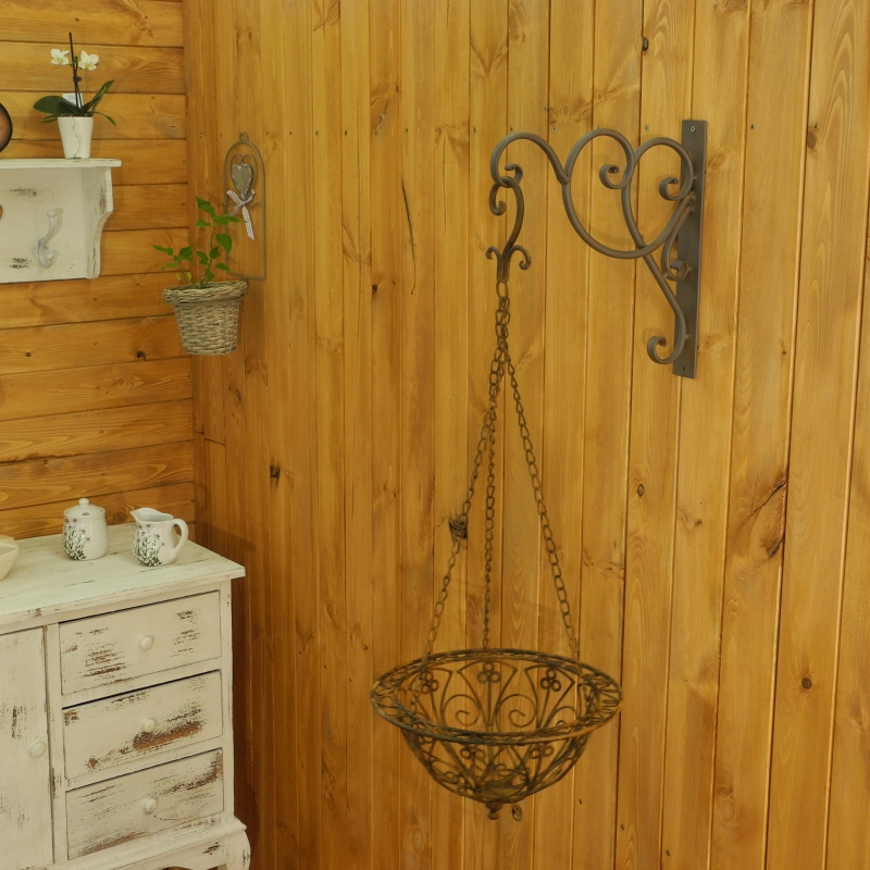 Kovový závěs o průměru 30cm a výšce s řetízkem 82cm najde jistě své uplatnění v každém bytě, domě, chatě či chalupě. V košíku krásně vynikne ovoce, zelenina nebo třeba květiny.