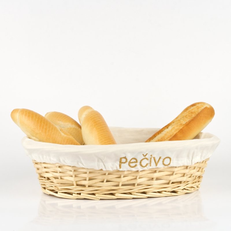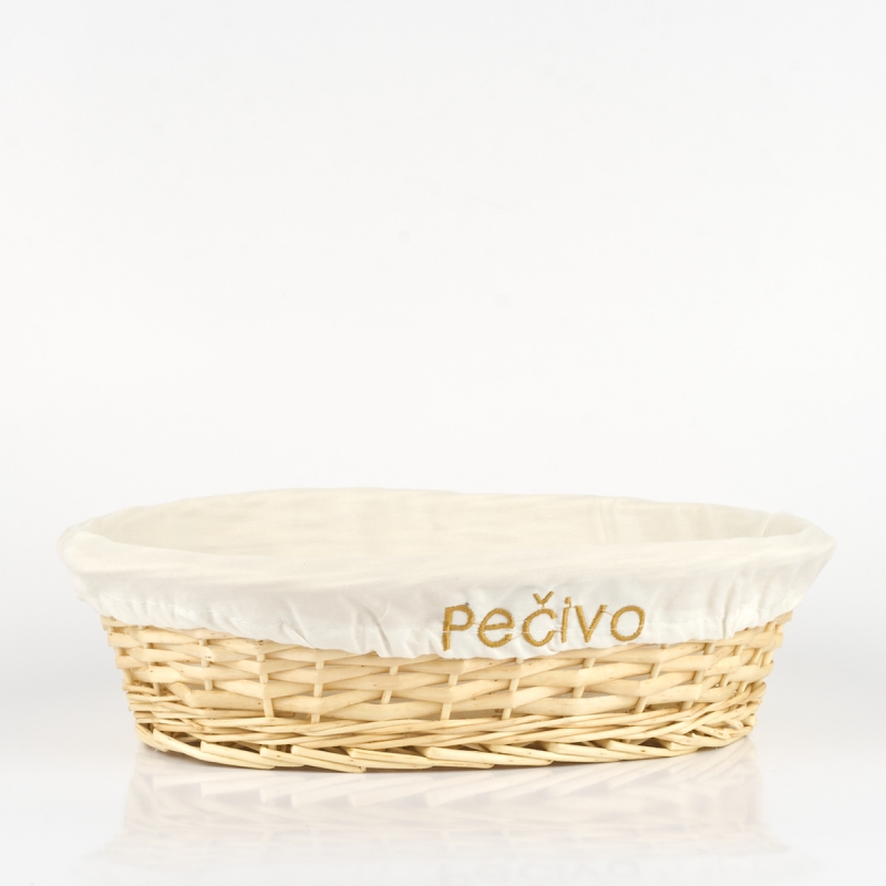 Košík - ošatka na pečivo nízký obválný s textilní světlou vystýlkou je vhodná dekorace na váš rodinný stůl.
