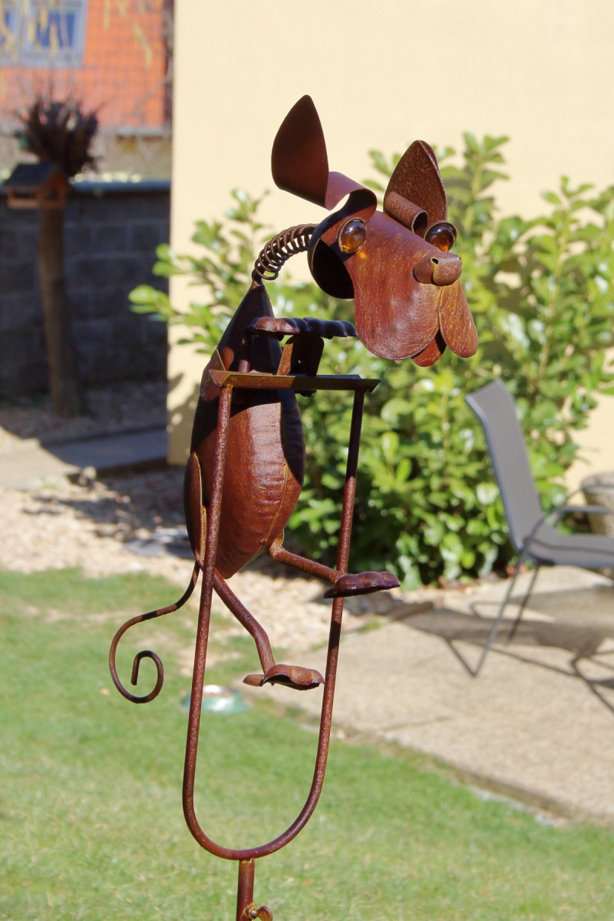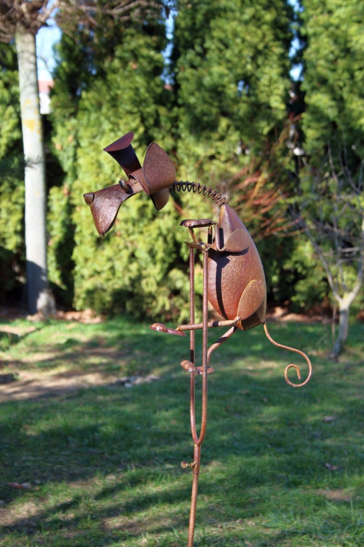 Výhodou kovových dekorácií do záhrady je ľahká manipulovateľnosť. Dekoráciu tak môžete v priebehu leta pohodlne premiestňovať.