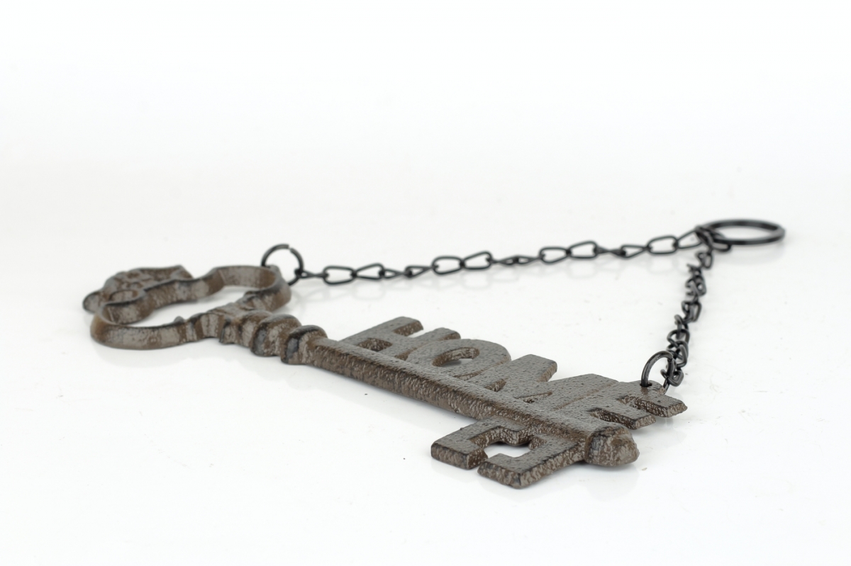 Kovová dekorácia na stenu v tvare starého dozického kľúča s nápisom HOME, vás privíta hneď vo vstupe do bytu či domu. Láska a pokoj tak na vás dýchne hneď v zádverí.