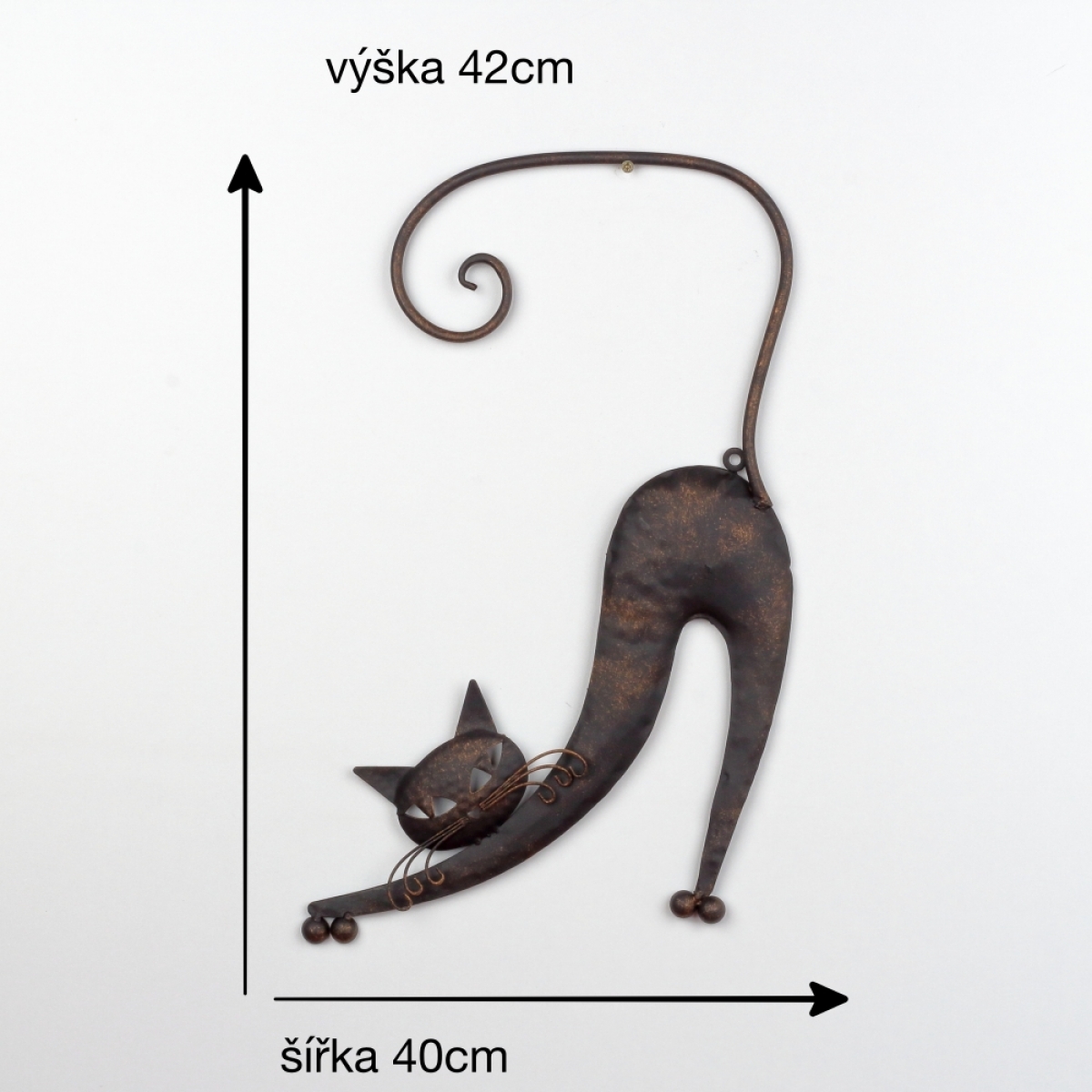 Kovová dekorácia na stenu mačka biela 25x49cm