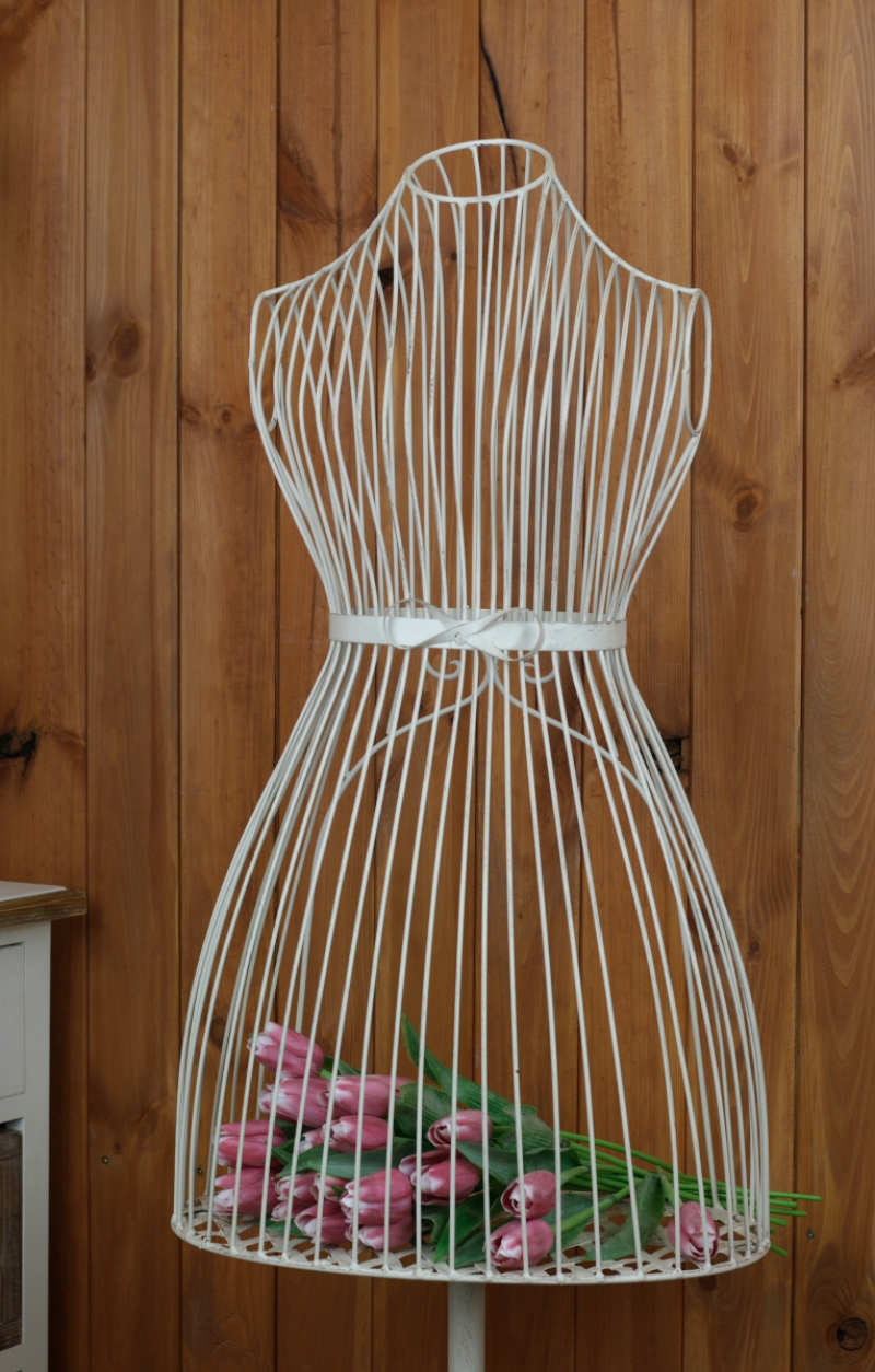 Celokovová krajčírska panna v bielej farbe s mašľou v páse je čisto dámsku záležitosťou. Jej nežný vzhľad sa hodí do priestorov romantických spální a dievčenských izieb. Chrbát figuríny sú otvorené. Môžete do voľného priestoru tak vložiť napr. Kvety alebo sviečky.