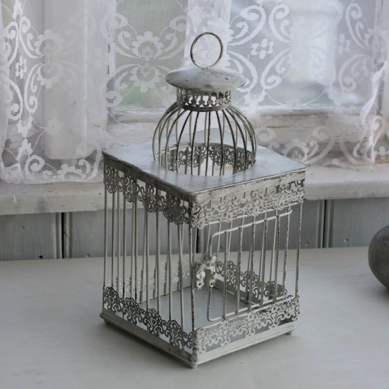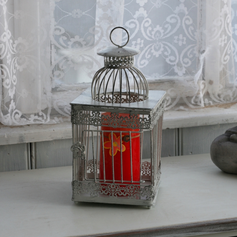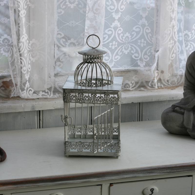 Táto klietka je štvorcová, z jednej strany má dvierka pre jednoduché vkladanie práve sviečok či iných dekorácií (kvetín). Lucernu môžete tiež zavesiť za kovové oko v hornej časti. Klietka je krásne zdobená, lemovanie pripomína čipku. Je doplnená o štýlový patinu.